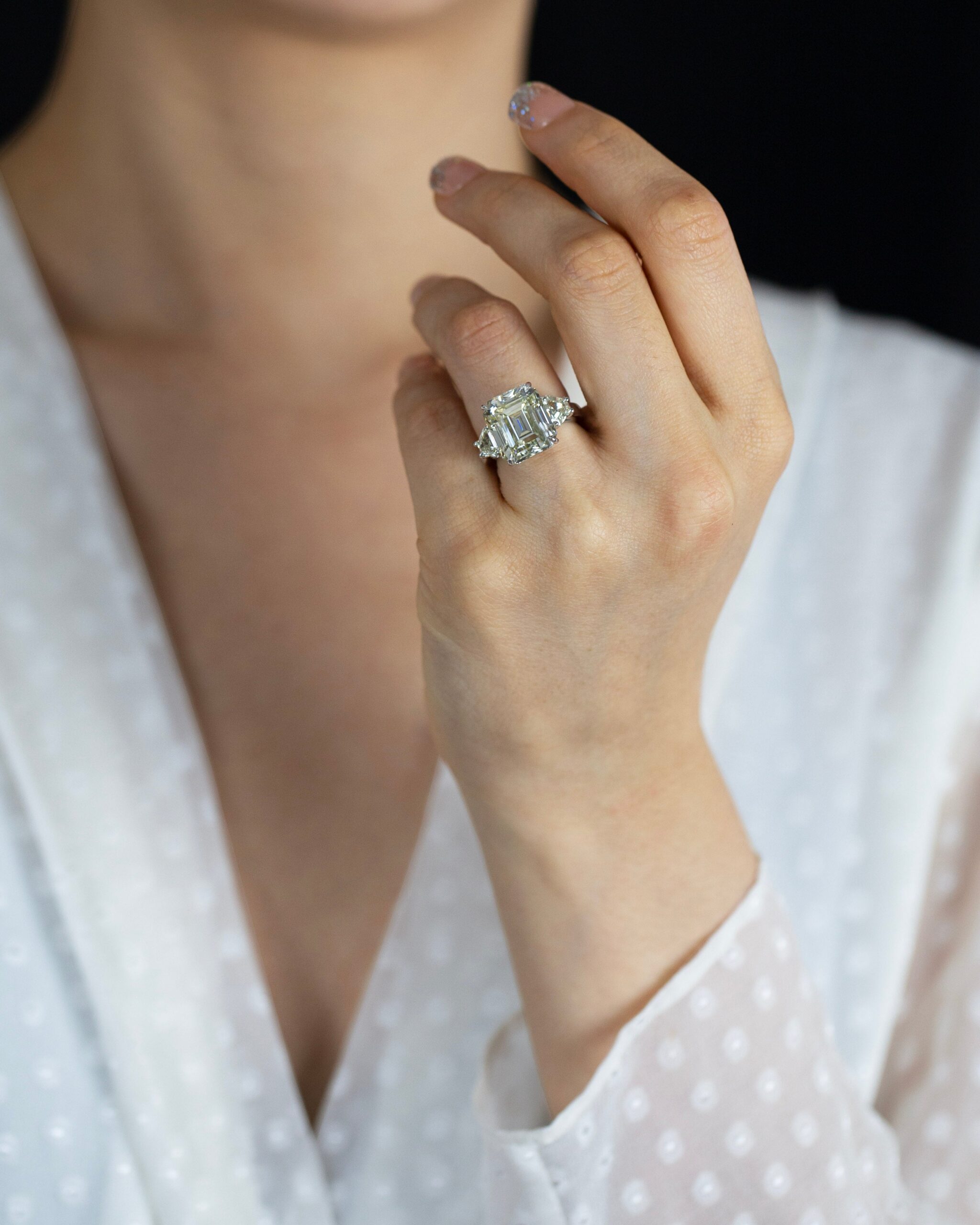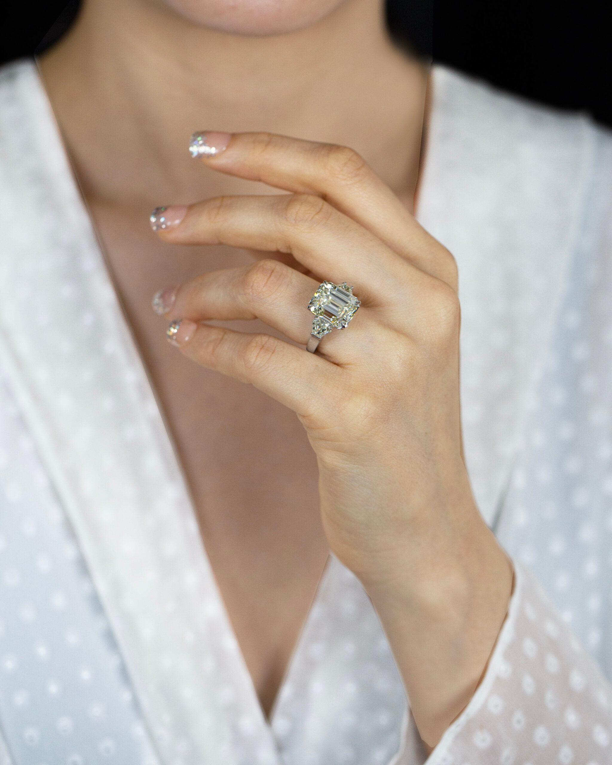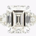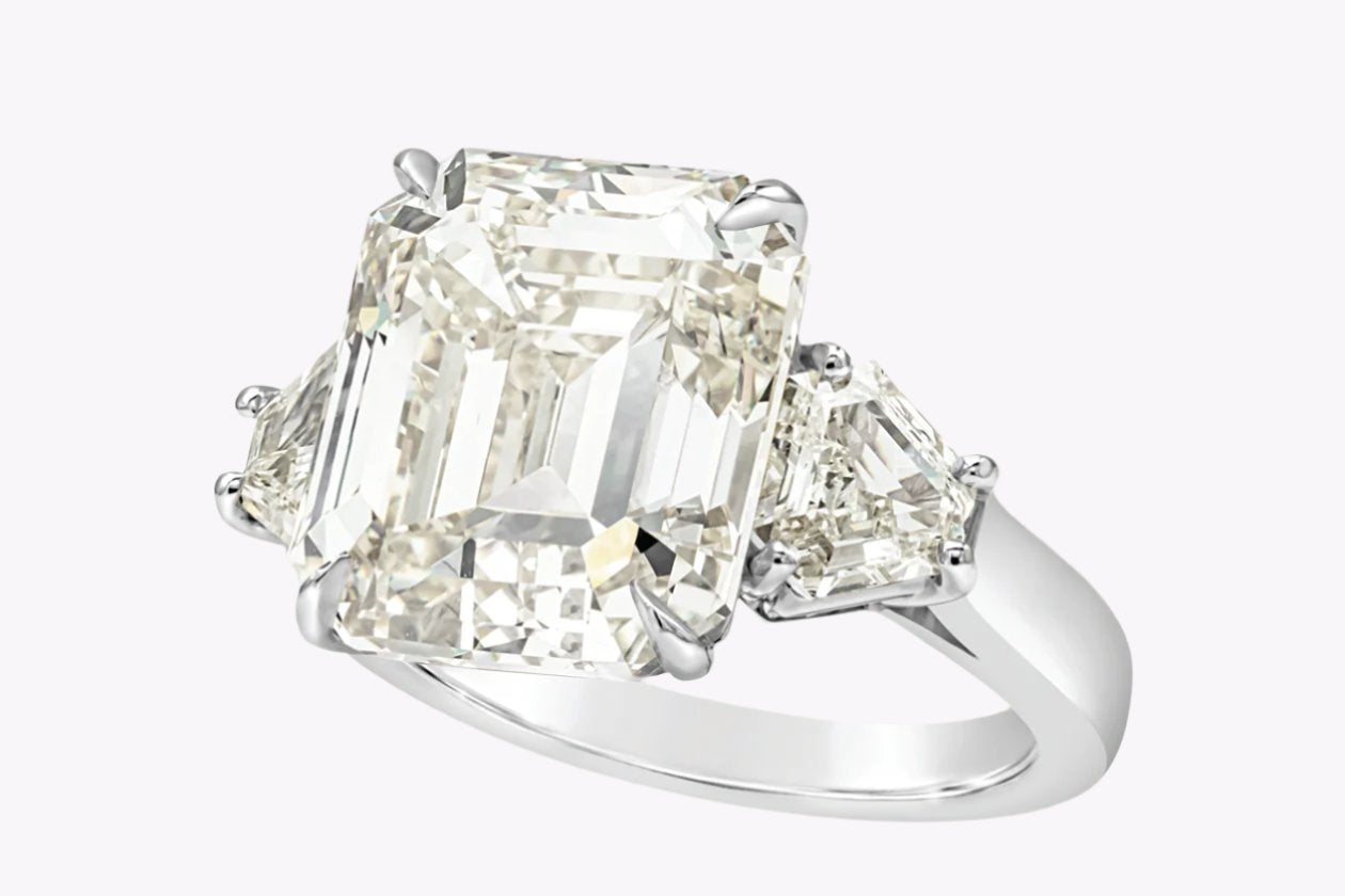 11.11 Carats Emerald Cut Diamond Three-Stone Engagement Ring in Platinum