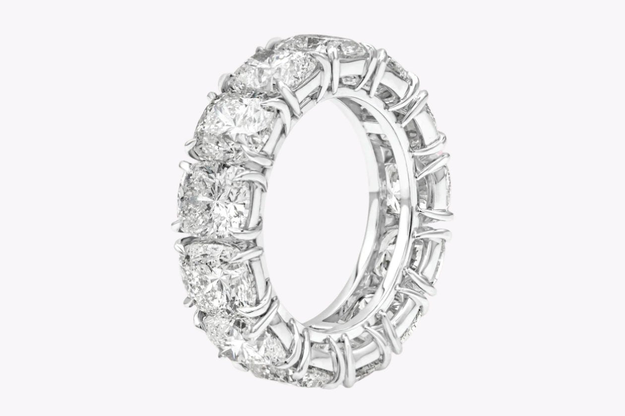 13.47 Carats Total Cushion Cut Diamond Eternity Wedding Band in Platinum