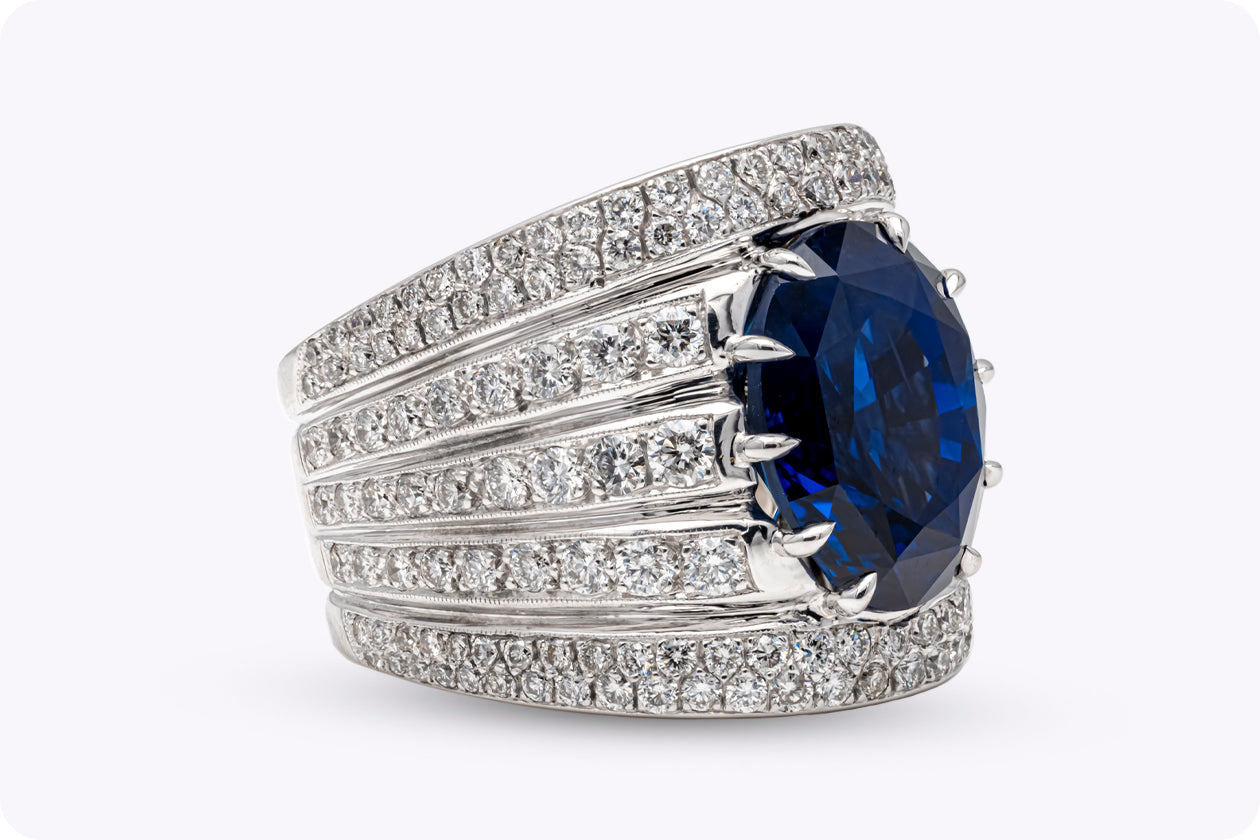 15.27 Carats Oval Cut Sapphire & Diamond Wide Cocktail Ring in White Gold