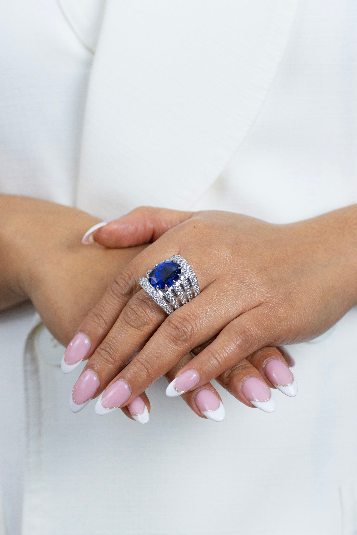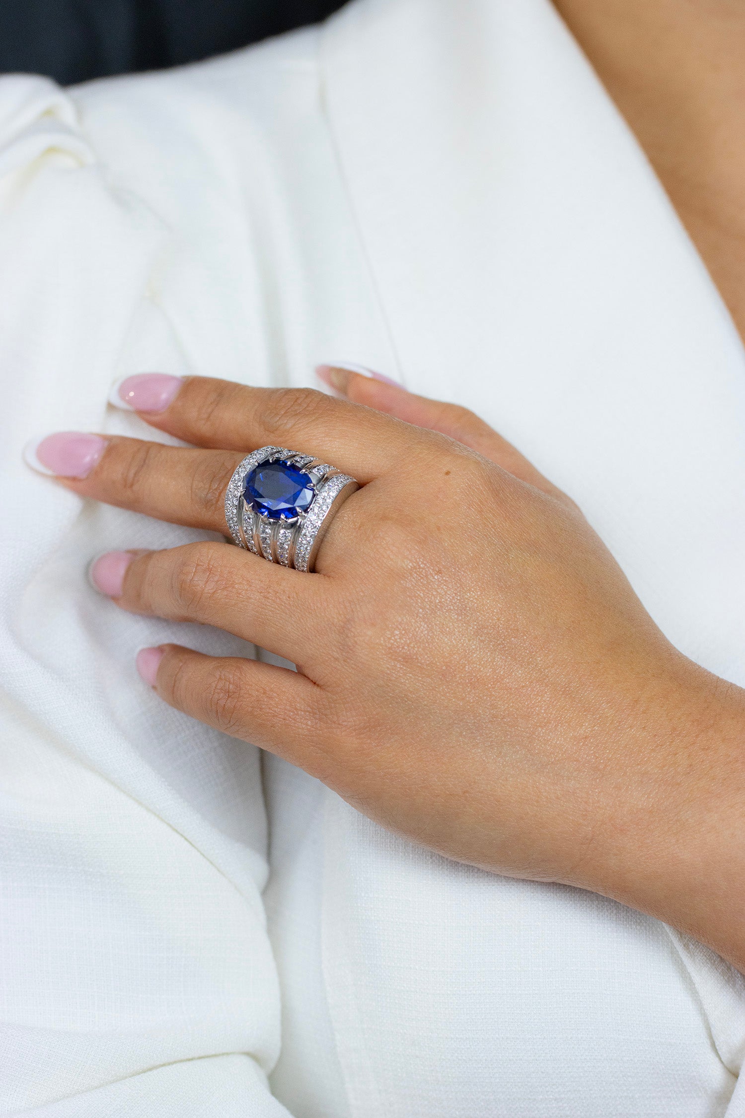Be the first to review “15.27 Carats Oval Cut Sapphire & Diamond Wide Cocktail Ring in White Gold”