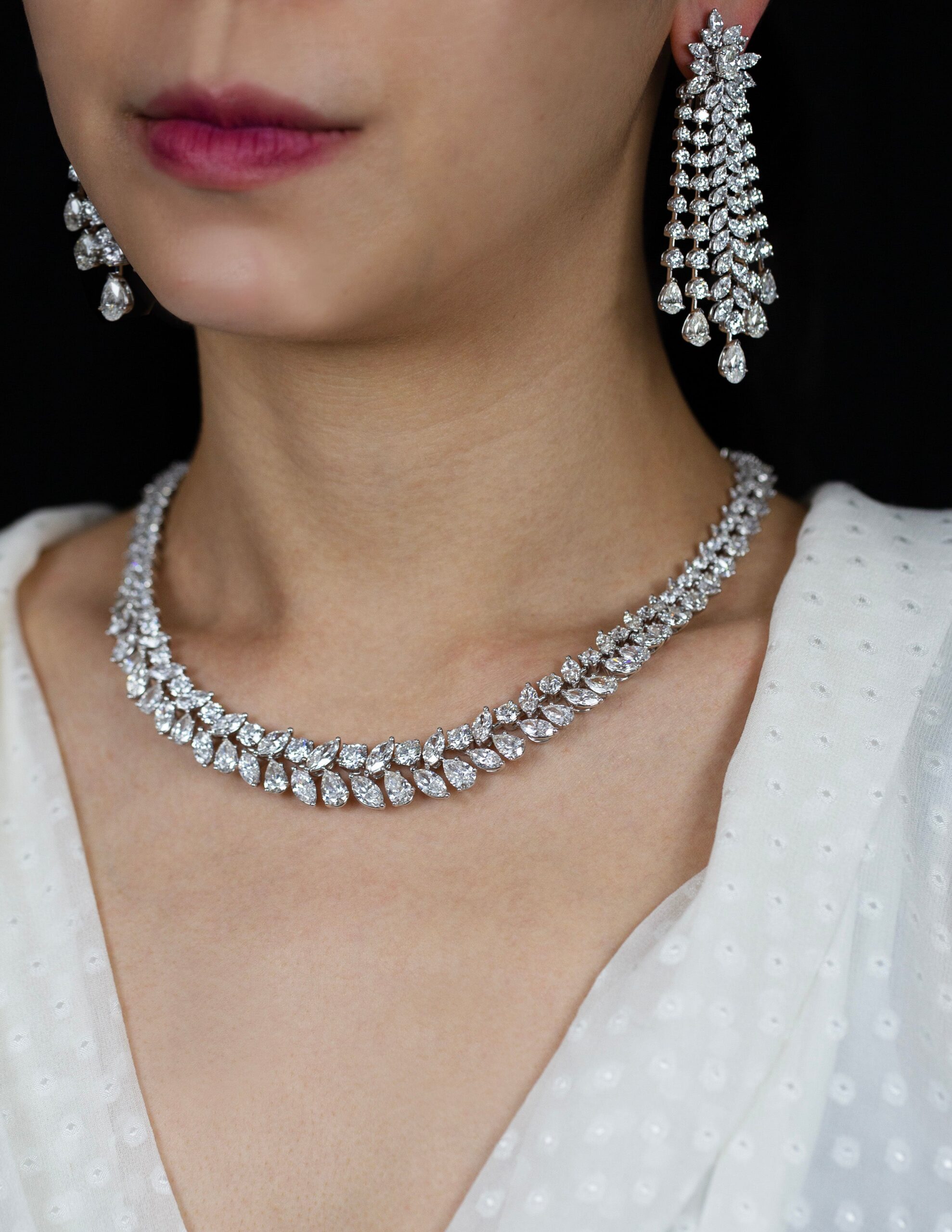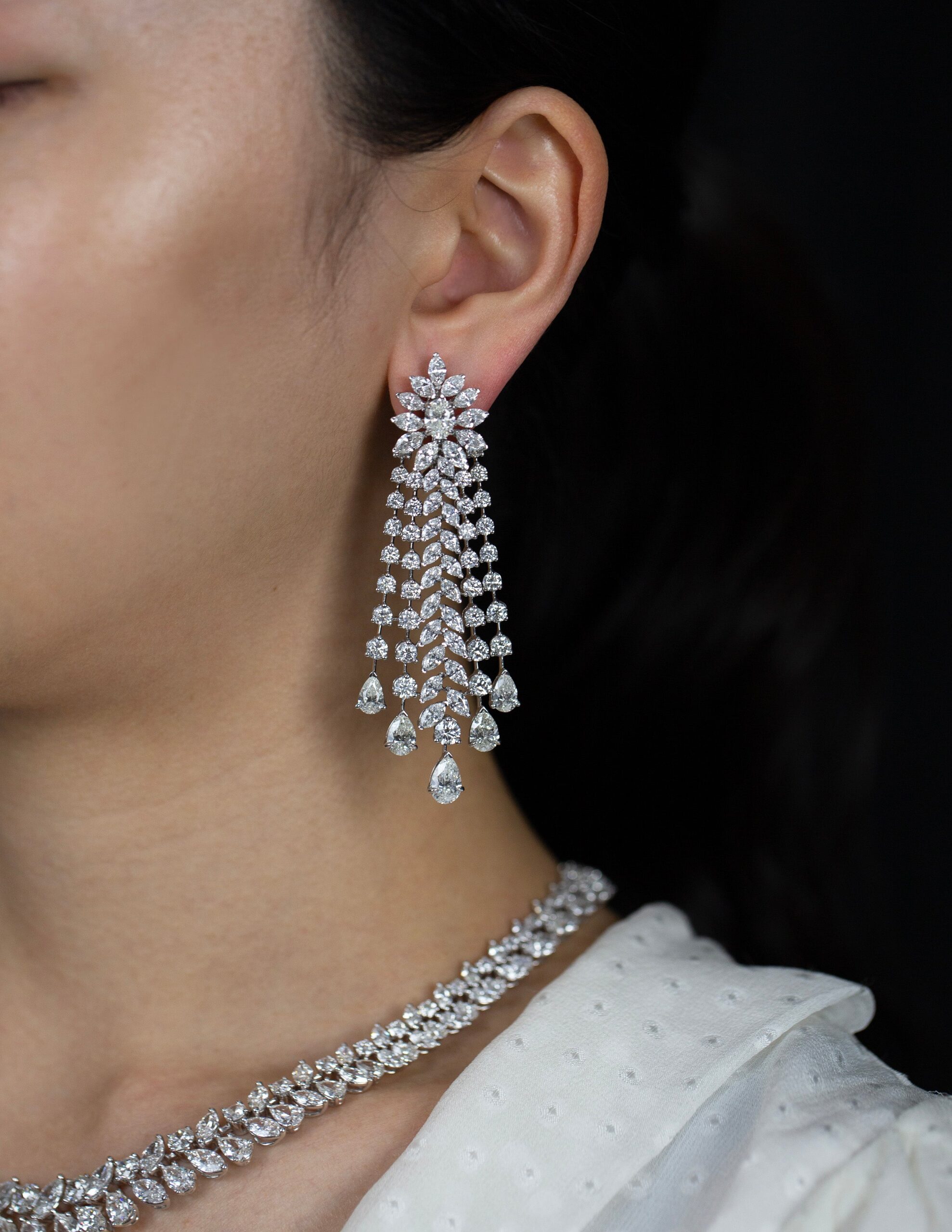 27.01 Carats Total Mixed-Cut Diamond Chandelier Drop Earrings in White Gold