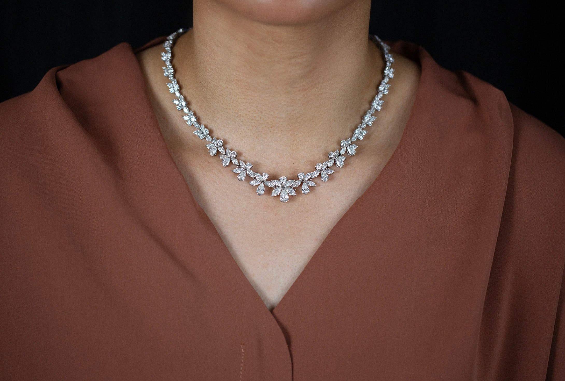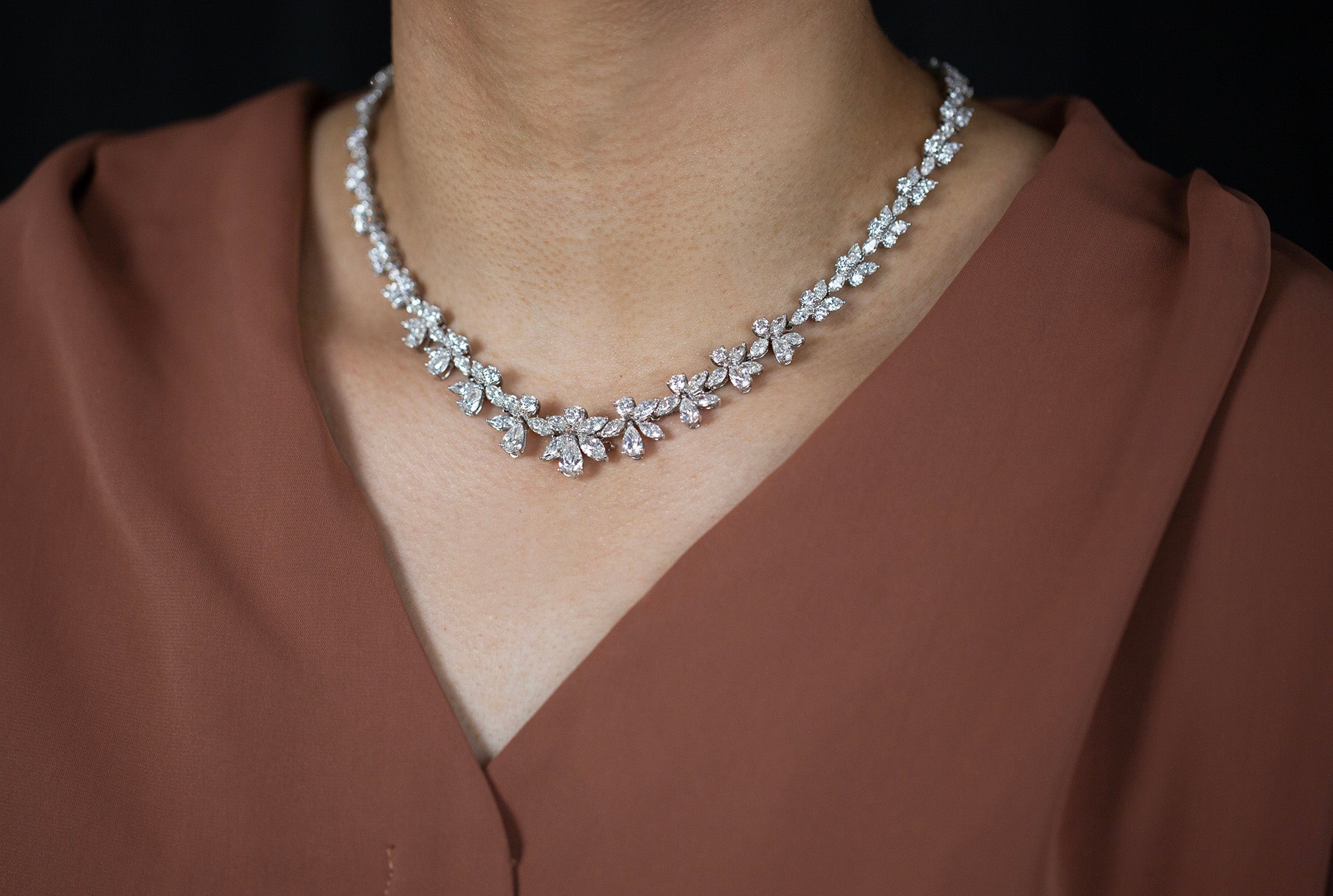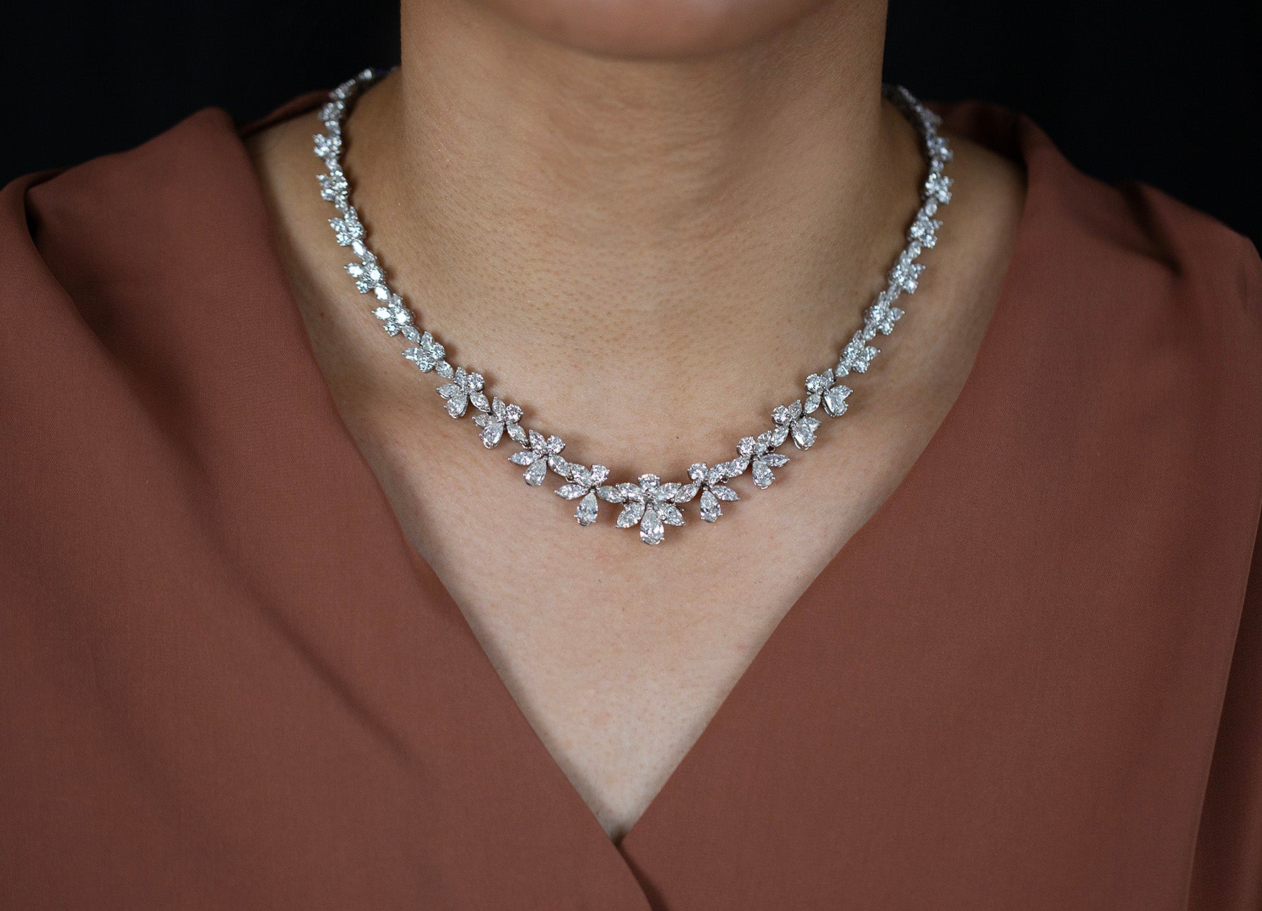 30.56 Carats Total Mixed-Cut Diamond Collar Necklace in White Gold