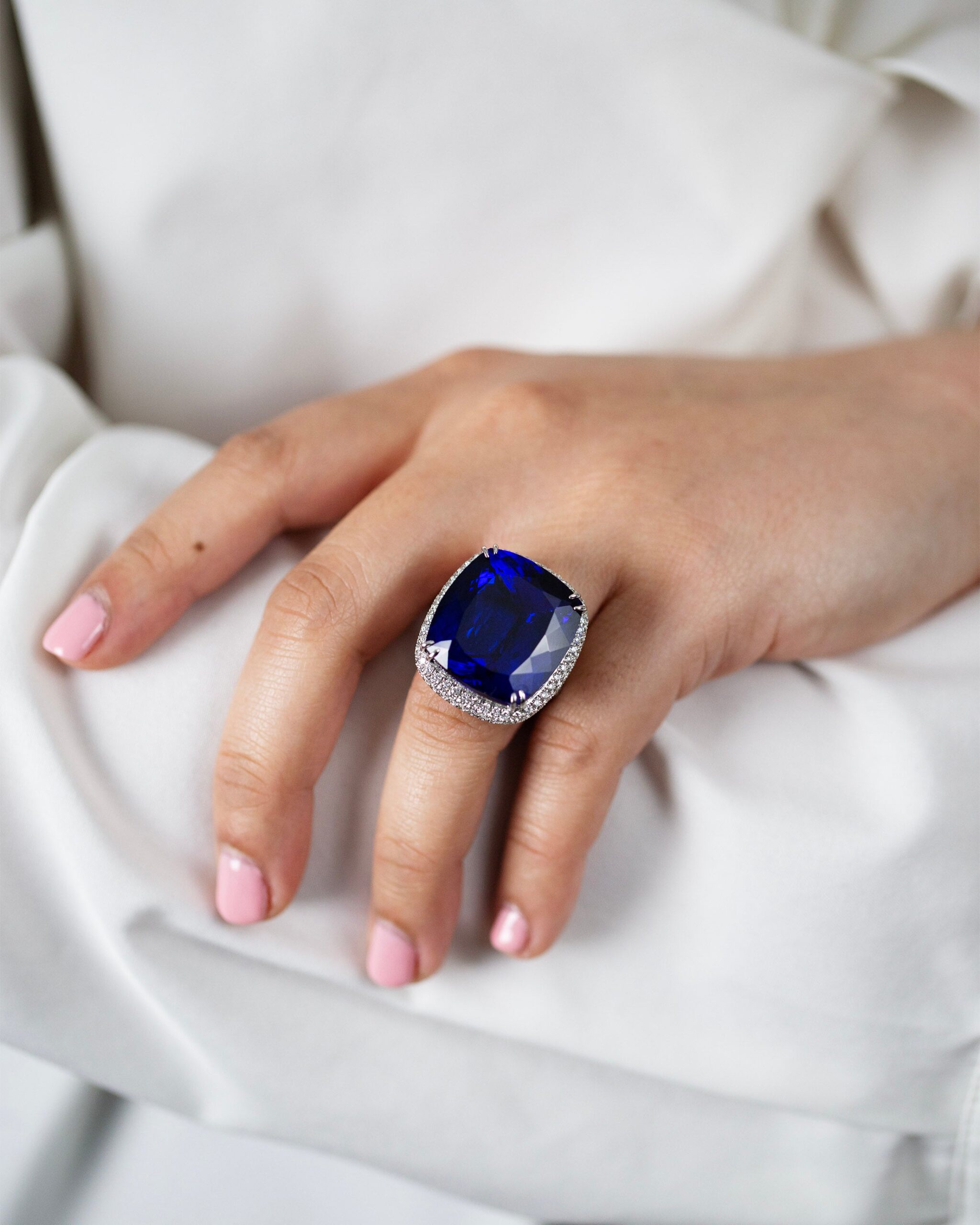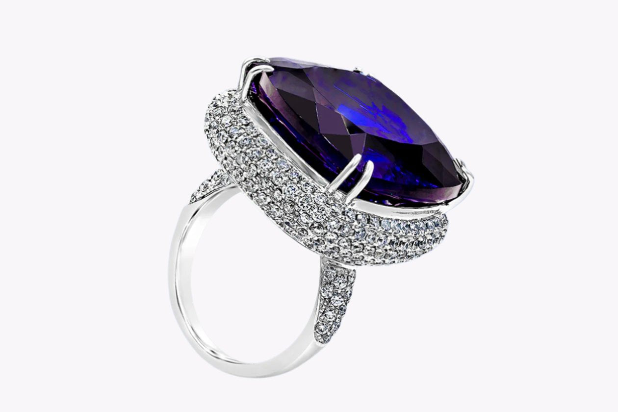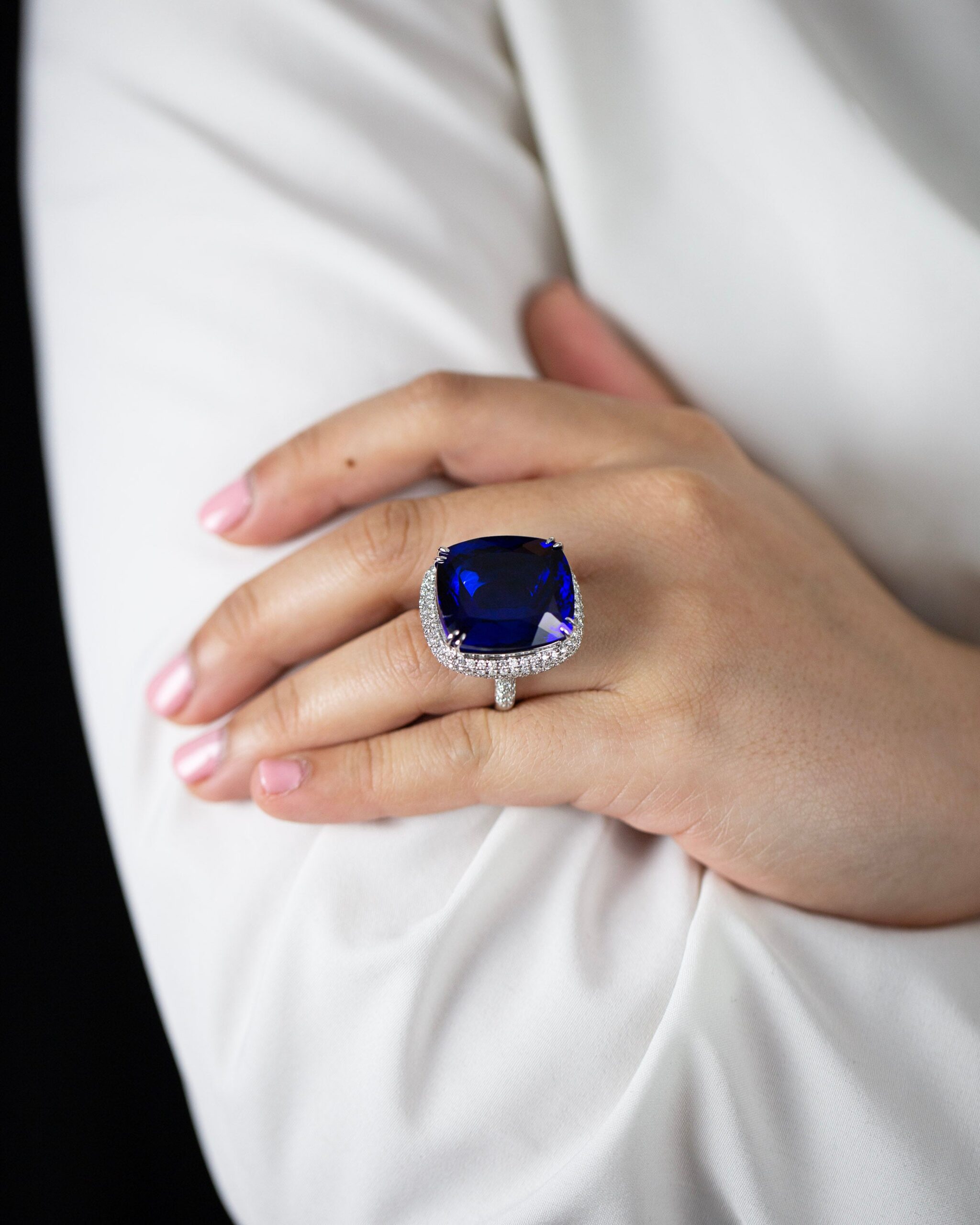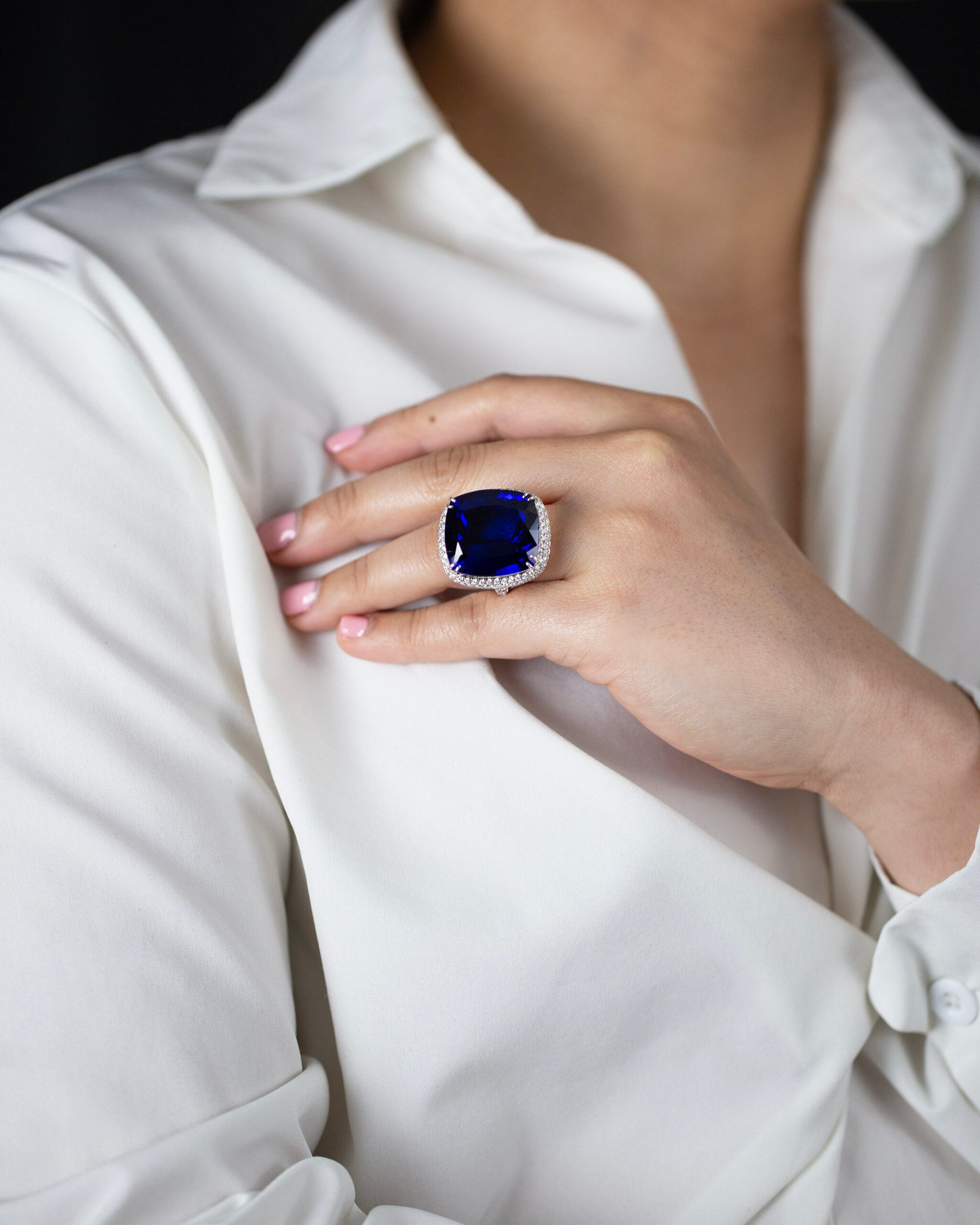 44.04 Carats Large Cushion Cut Tanzanite & Diamond Cocktail Ring in White Gold