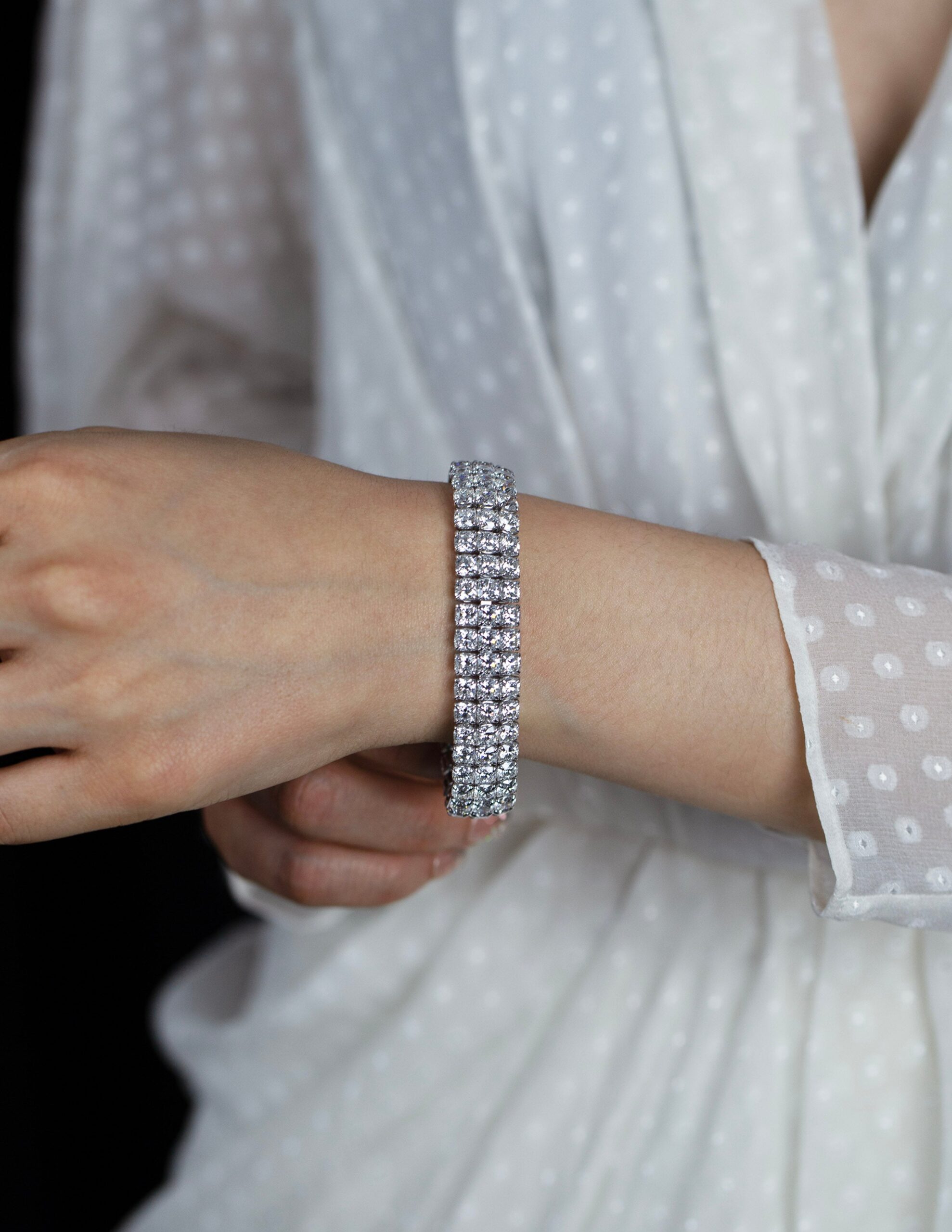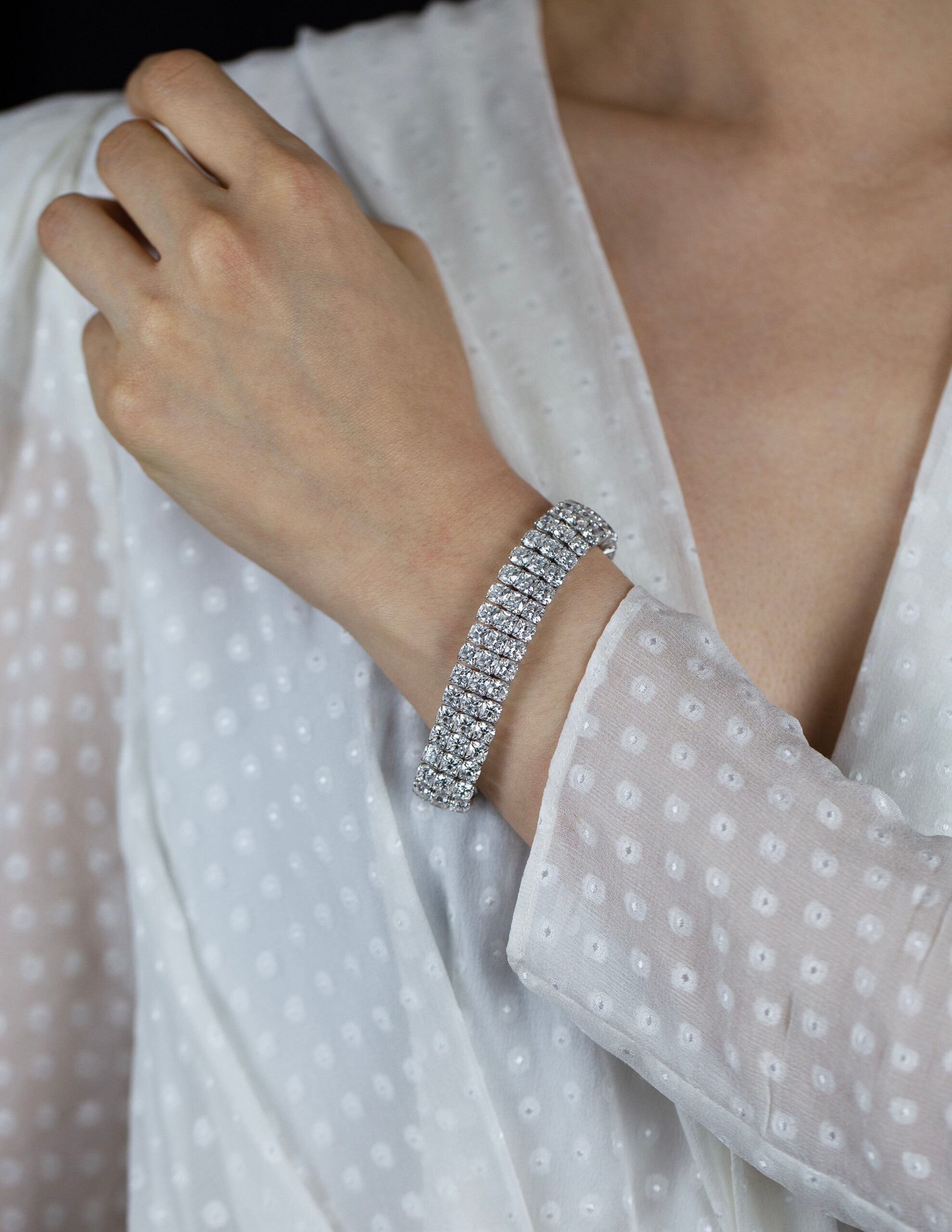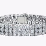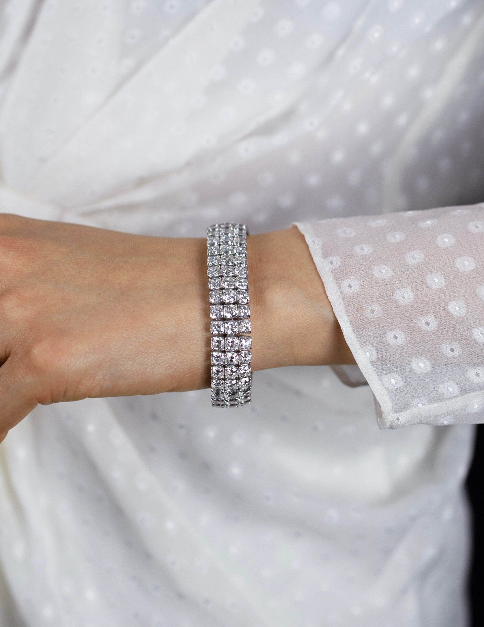 44.30 Carats Total Cushion Cut Diamond Three-Row Tennis Bracelet in White Gold