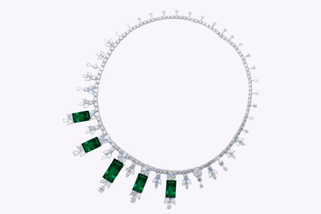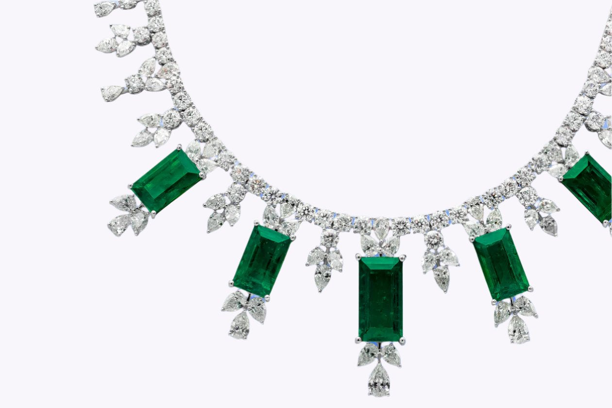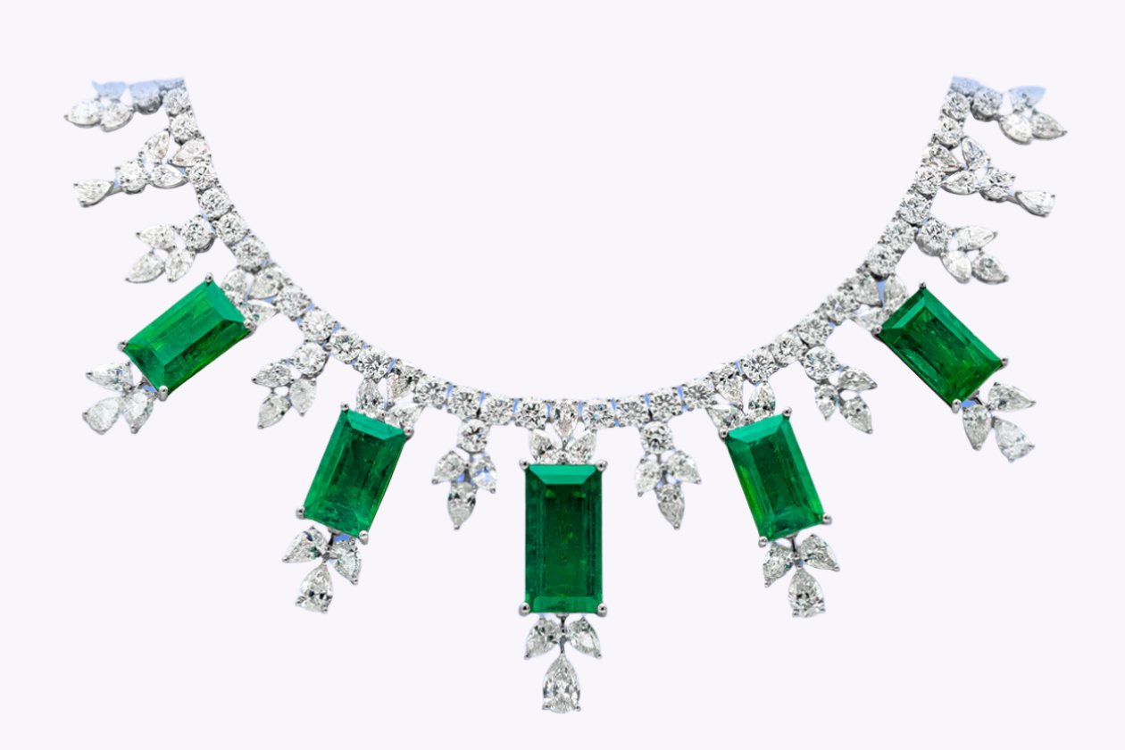 48.68 Carats Total Colombian Emerald & Diamond Necklace in White Gold