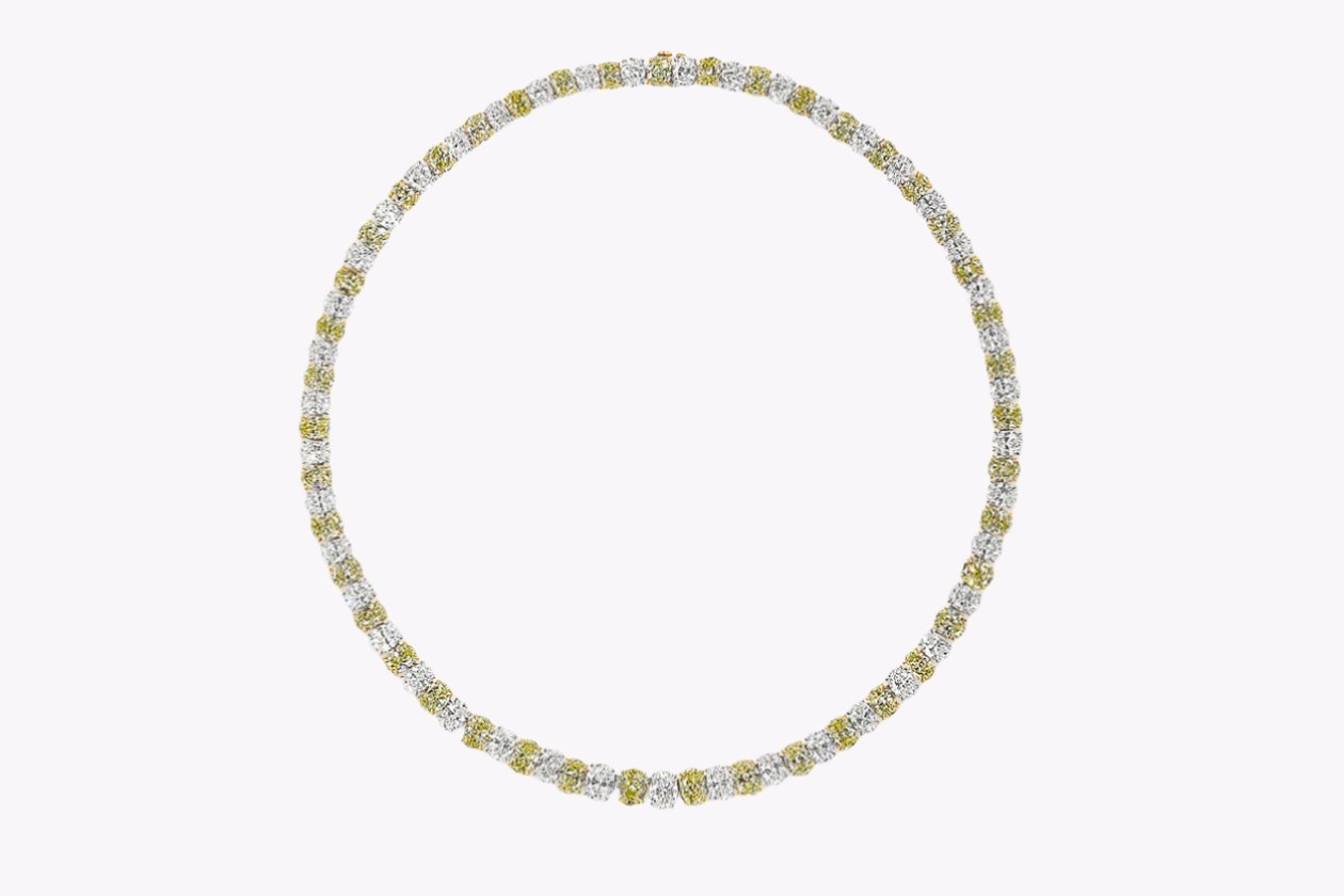 Be the first to review “54.75 Carats Total Alternating Oval Cut Yellow & White Diamond Tennis Necklace in Platinum”