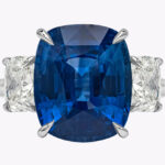 GIA Certified 11.04 Carat Cushion Cut Ceylon Blue Sapphire Three Stone Engagement Ring in Platinum