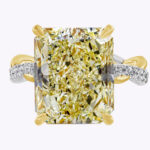 GIA Certified 12.16 Carats Radiant Cut Yellow Diamond Intertwined Engagement Ring in Yellow Gold & Platinum