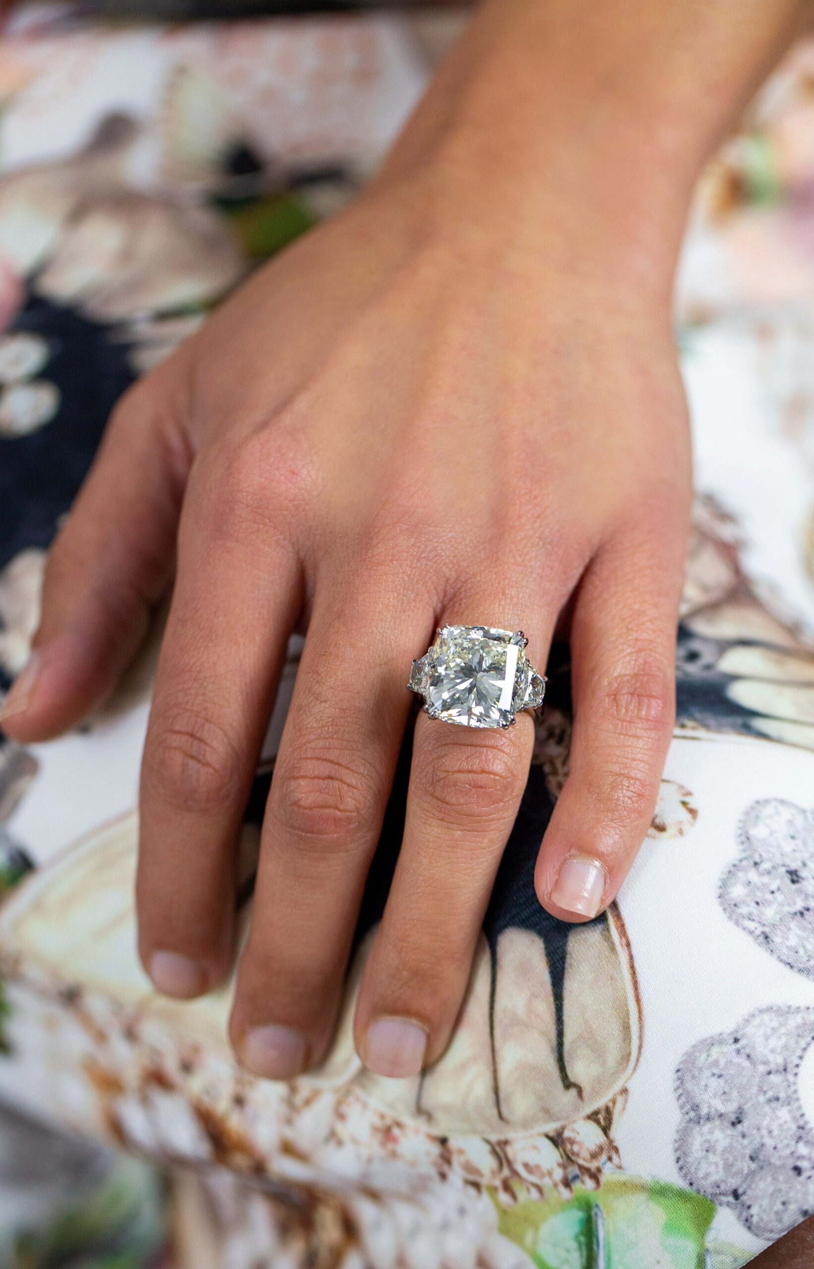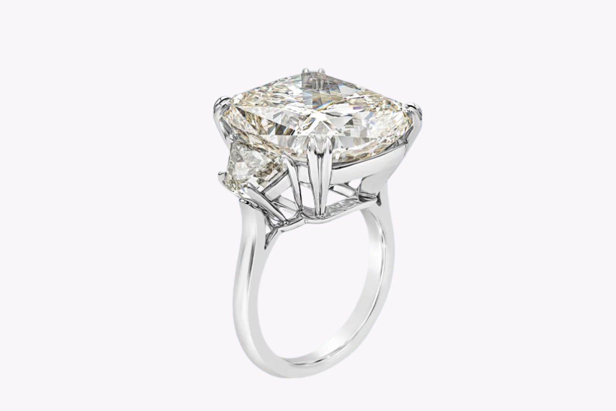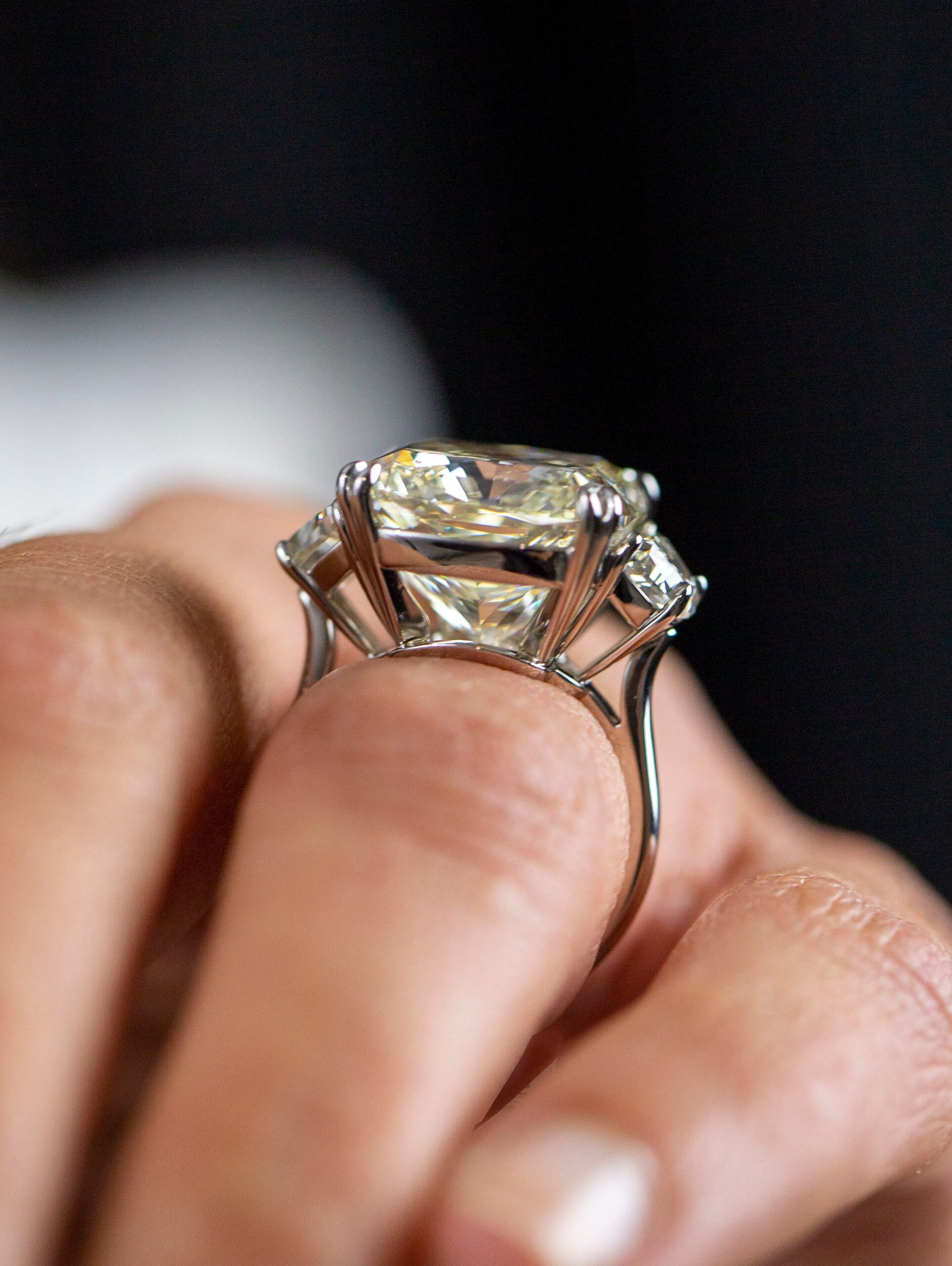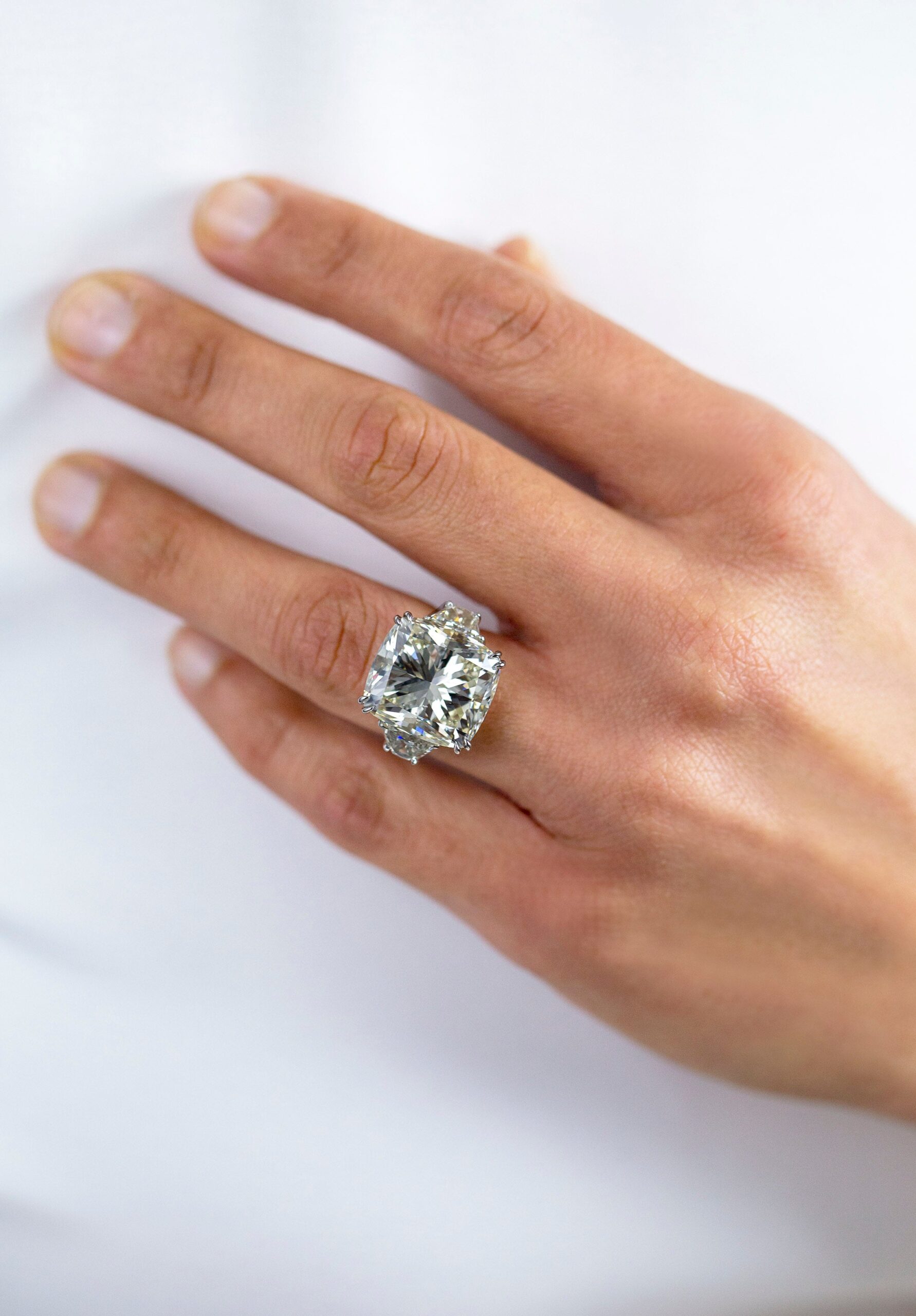 GIA Certified 17.18 Carats Cushion Cut Diamond Three-Stone Engagement Ring in Platinum