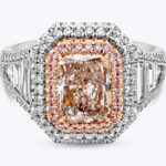 GIA Certified 2.01 Carats Radiant Cut Pink Diamond Double Halo Engagement Ring in Rose Gold & Platinum