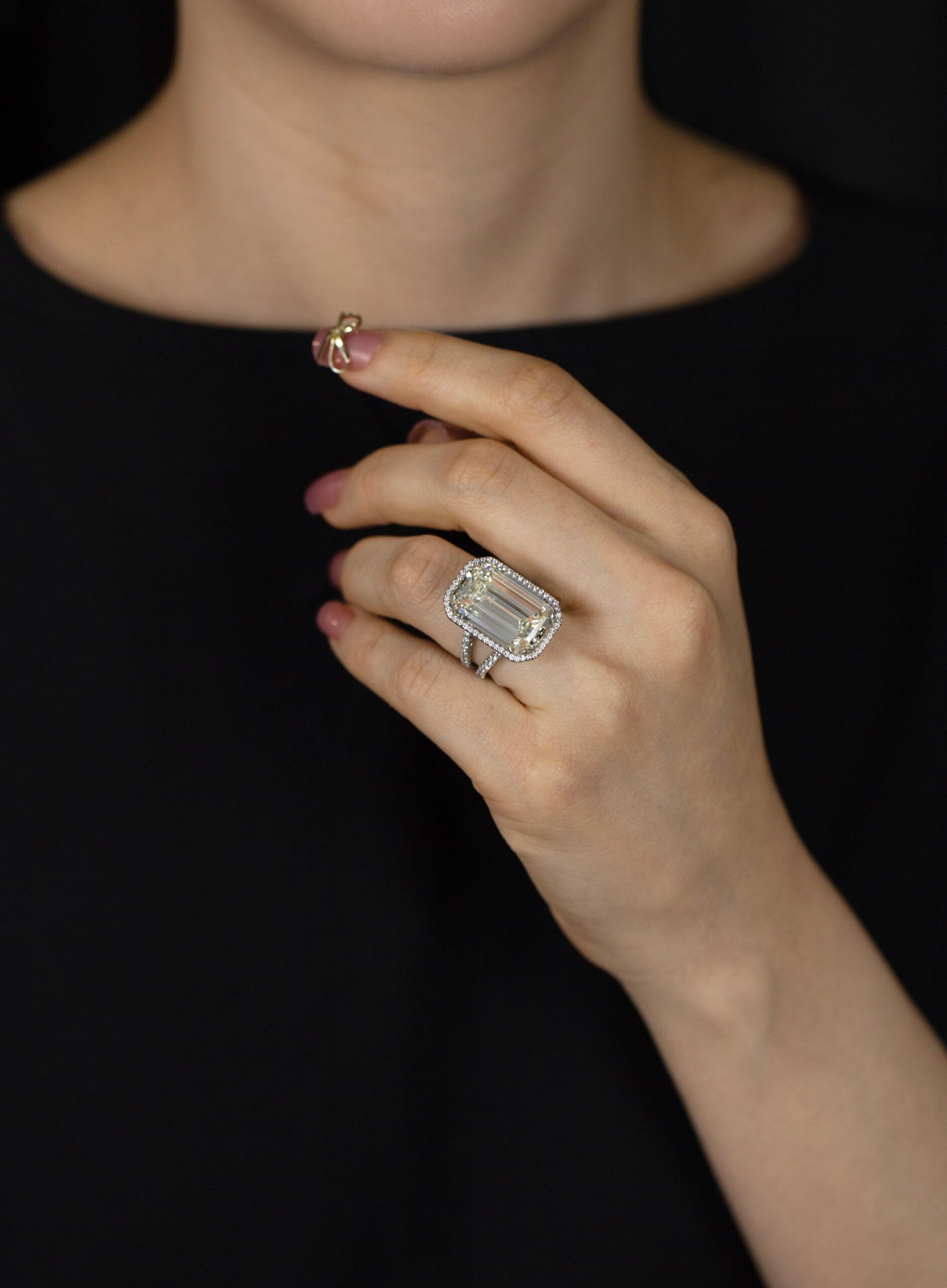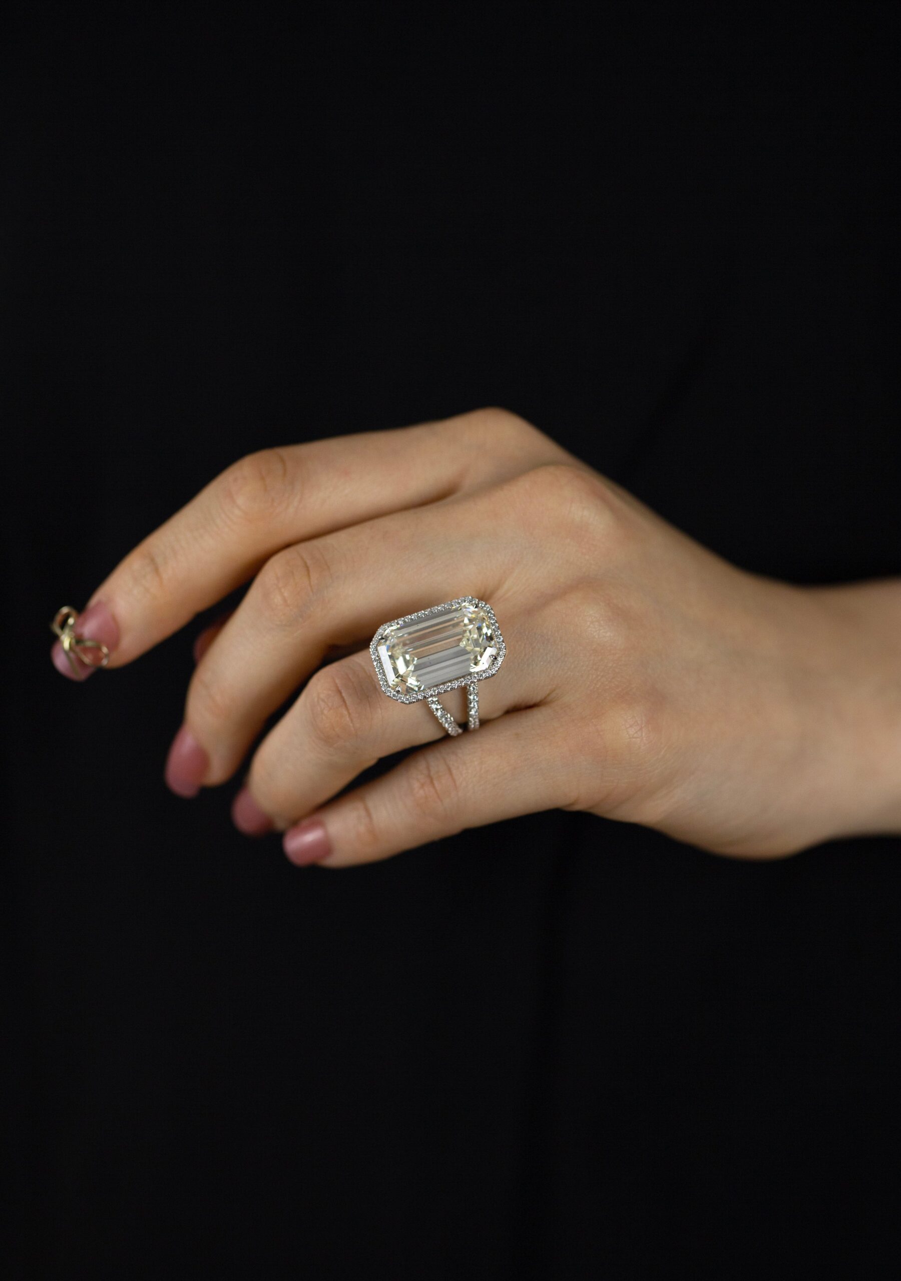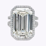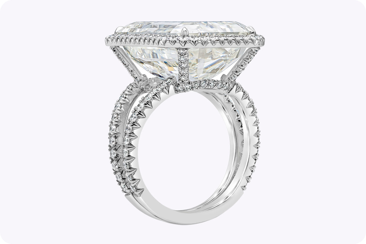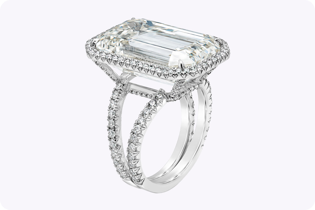 GIA Certified 20.21 Carats Emerald Cut Diamond Halo Engagement Ring in Platinum