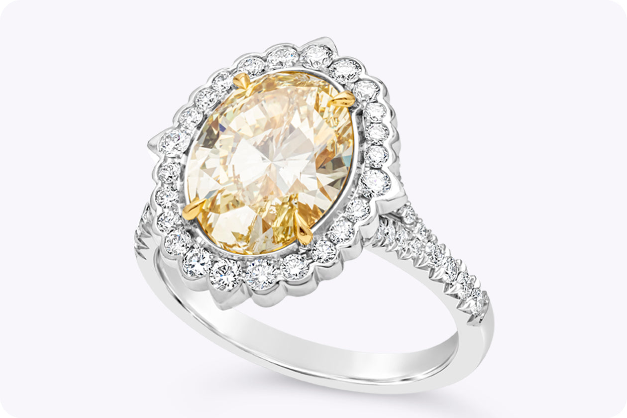 Be the first to review “GIA Certified 3.39 Carats Oval Cut Yellow Diamond Halo Engagement Ring in Yellow Gold & Platinum”