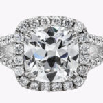 GIA Certified 4.11 Carats Cushion Cut Diamond Halo Engagement Ring in White Gold
