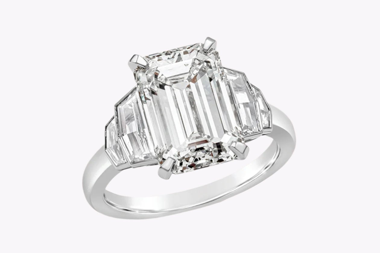 GIA Certified 5.01 Carats Emerald Cut Diamond Five-Stone Engagement Ring in Platinum