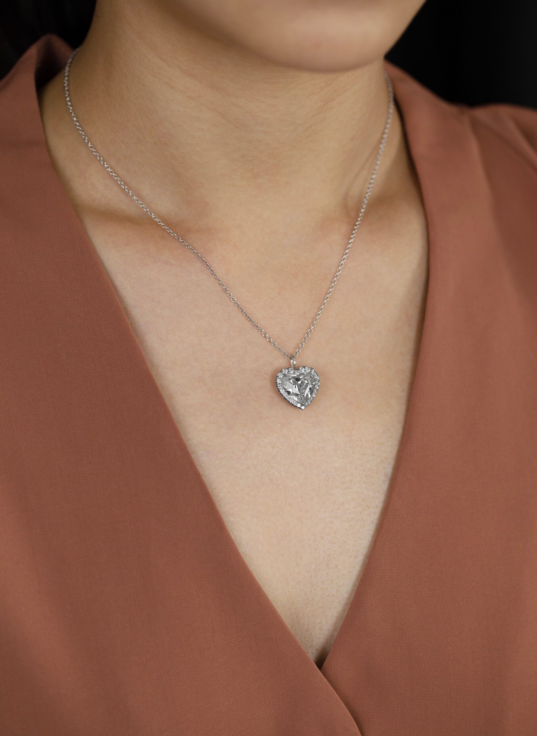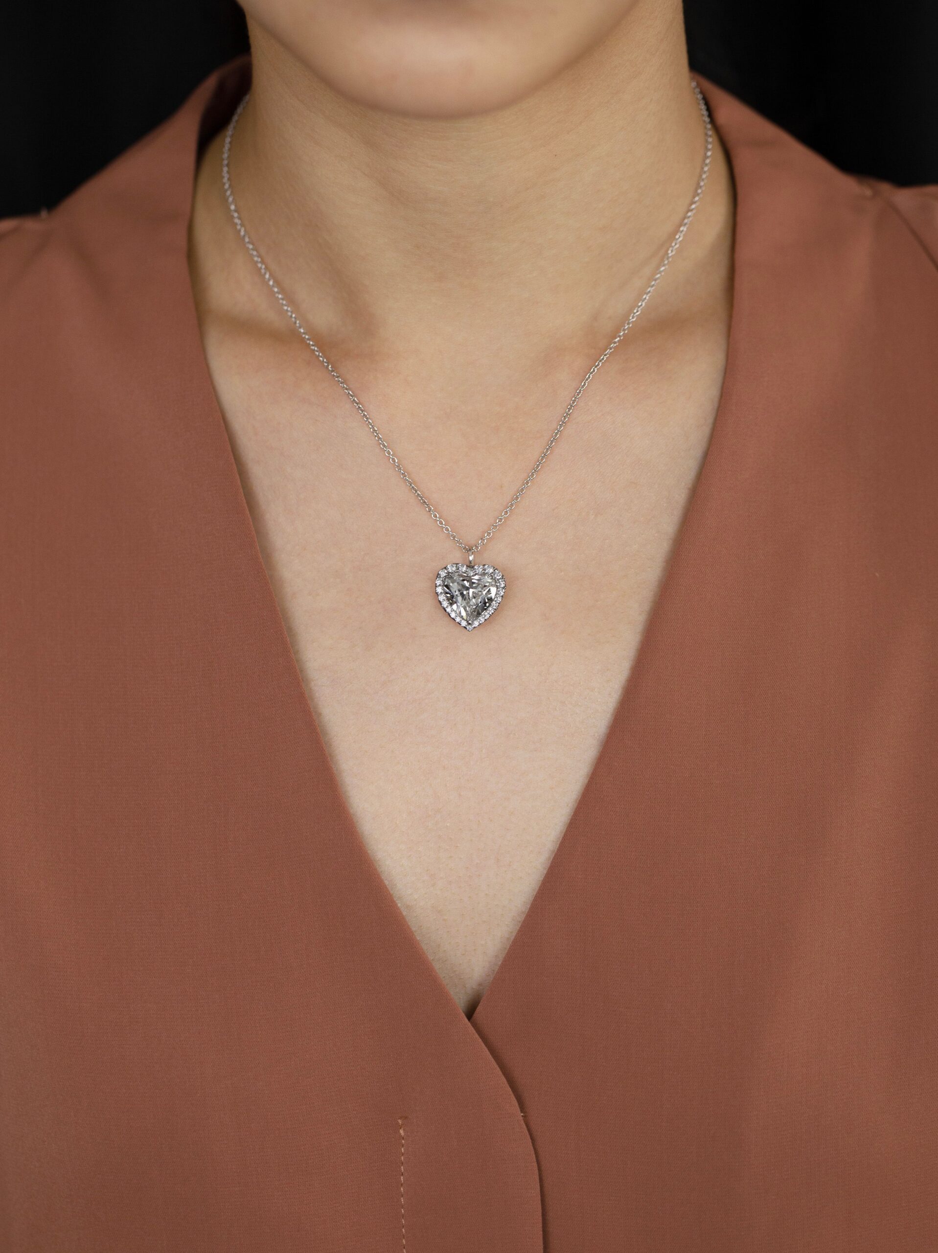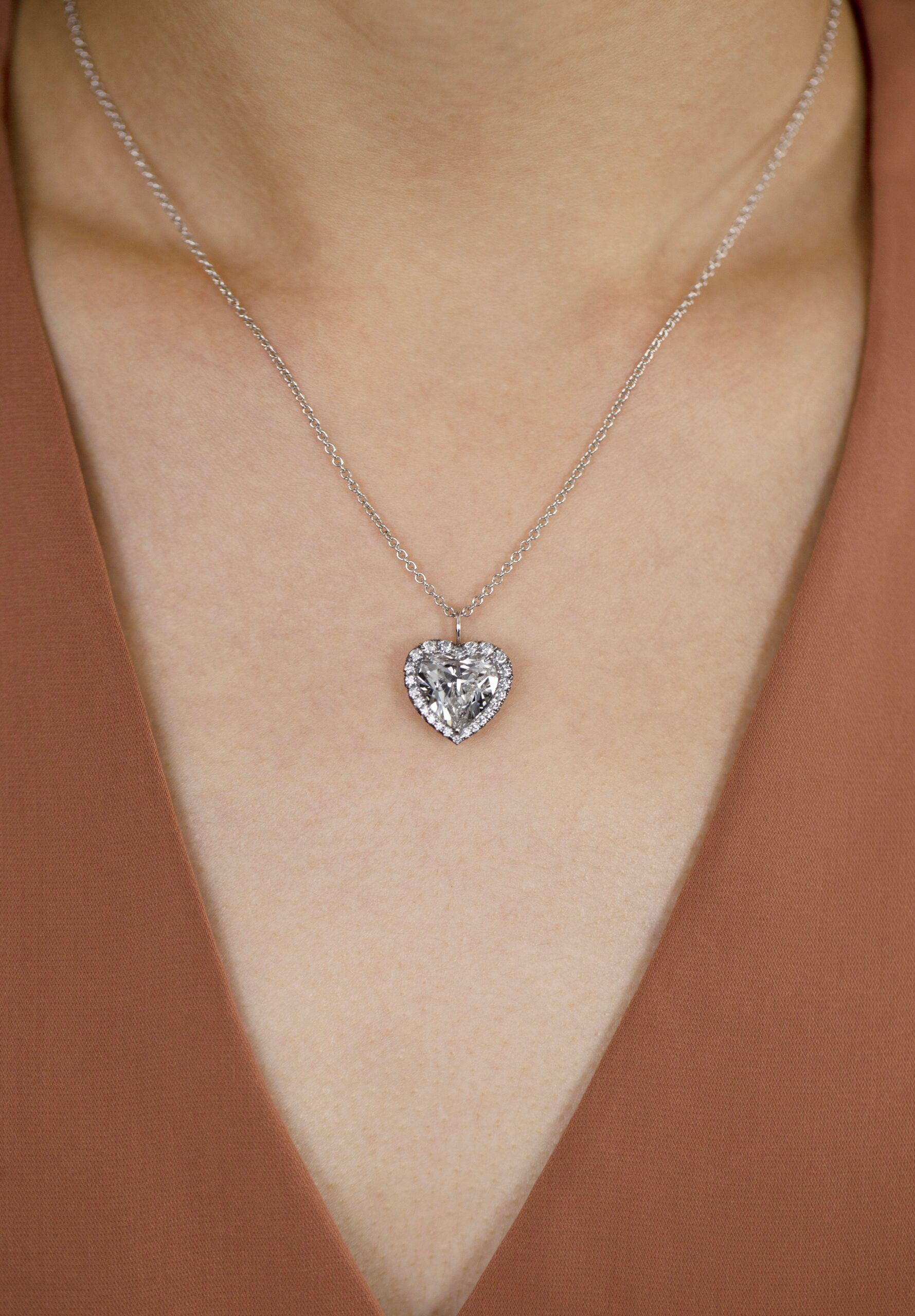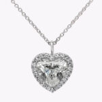 GIA Certified 5.01 Carats Heart Shape Diamond Halo Pendant Necklace in Platinum