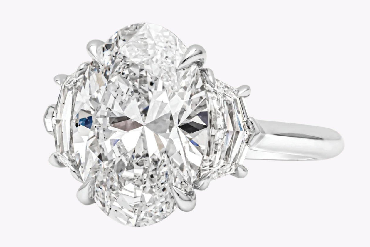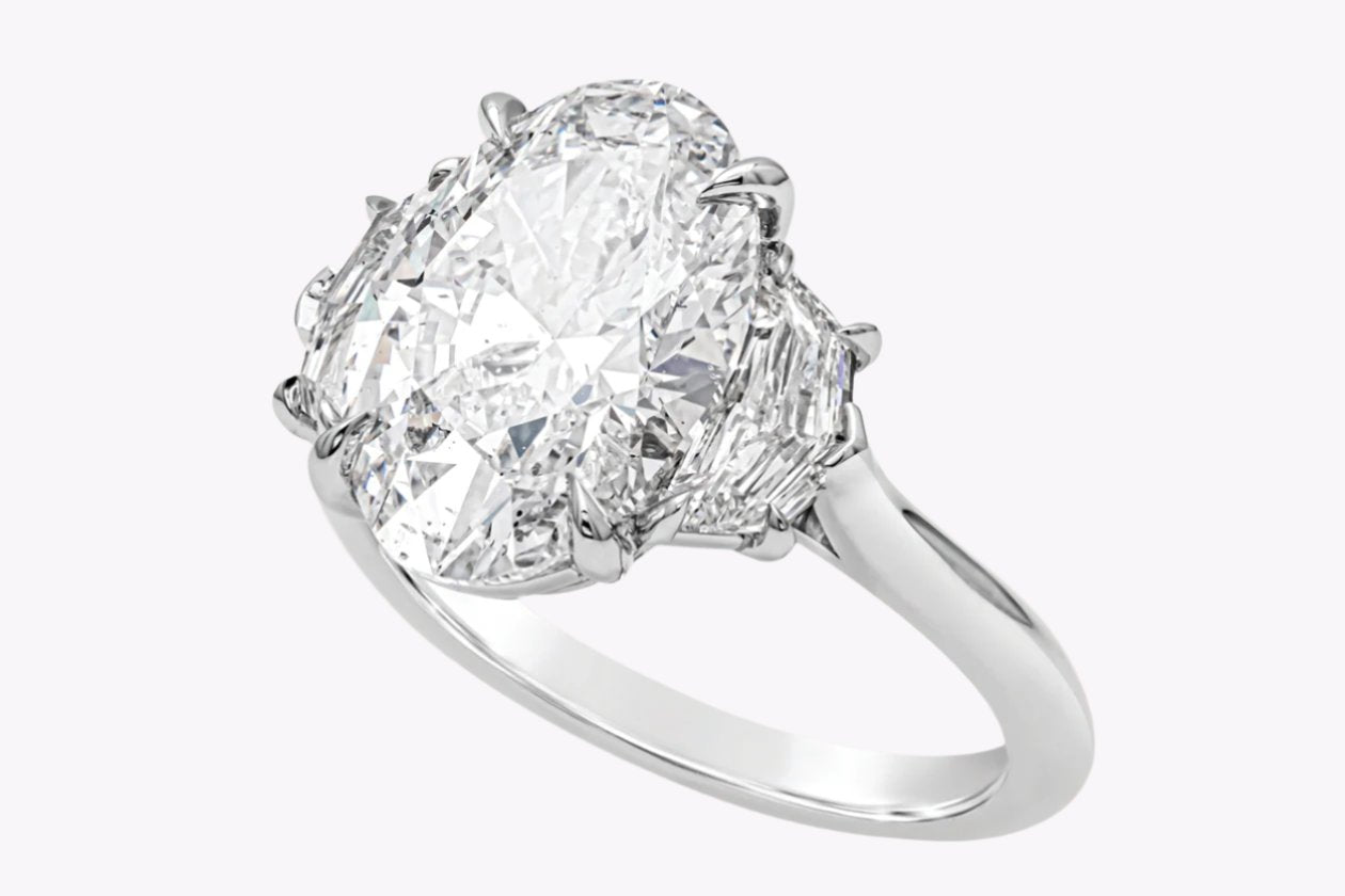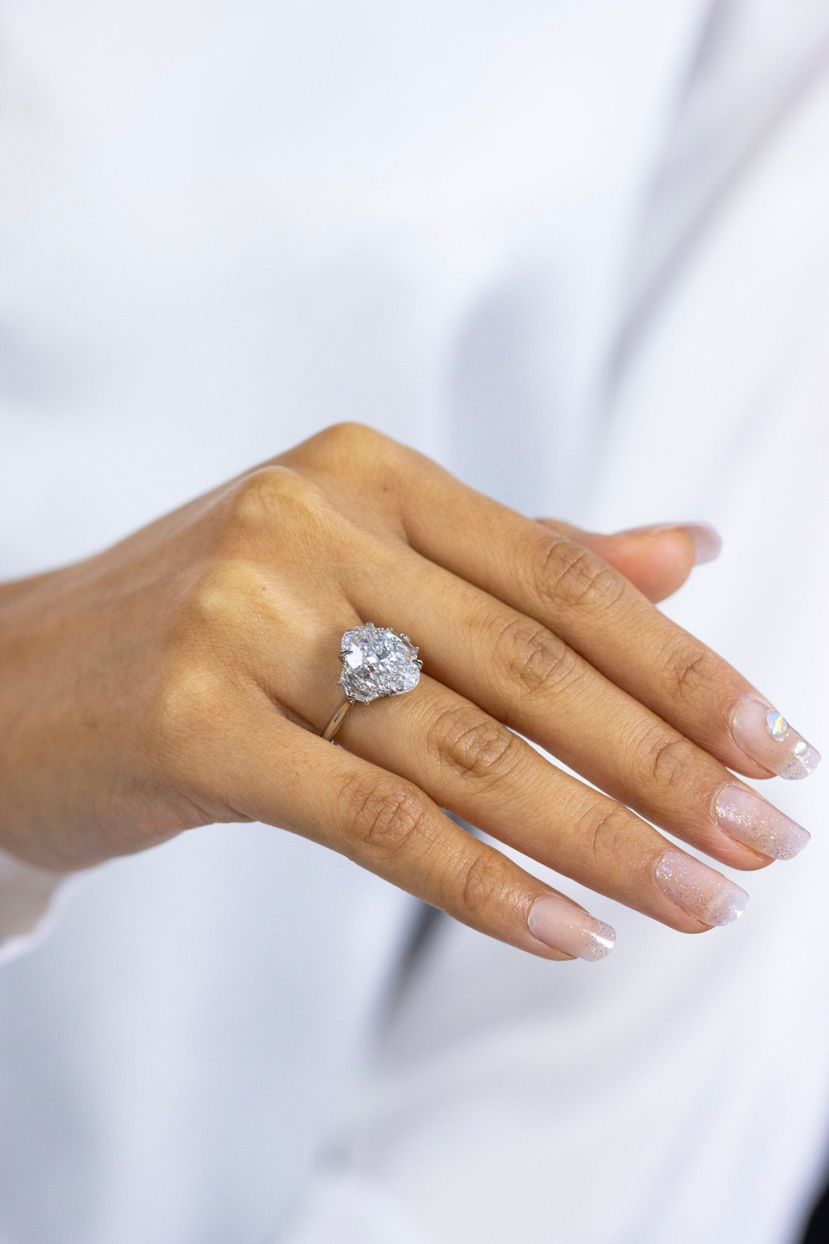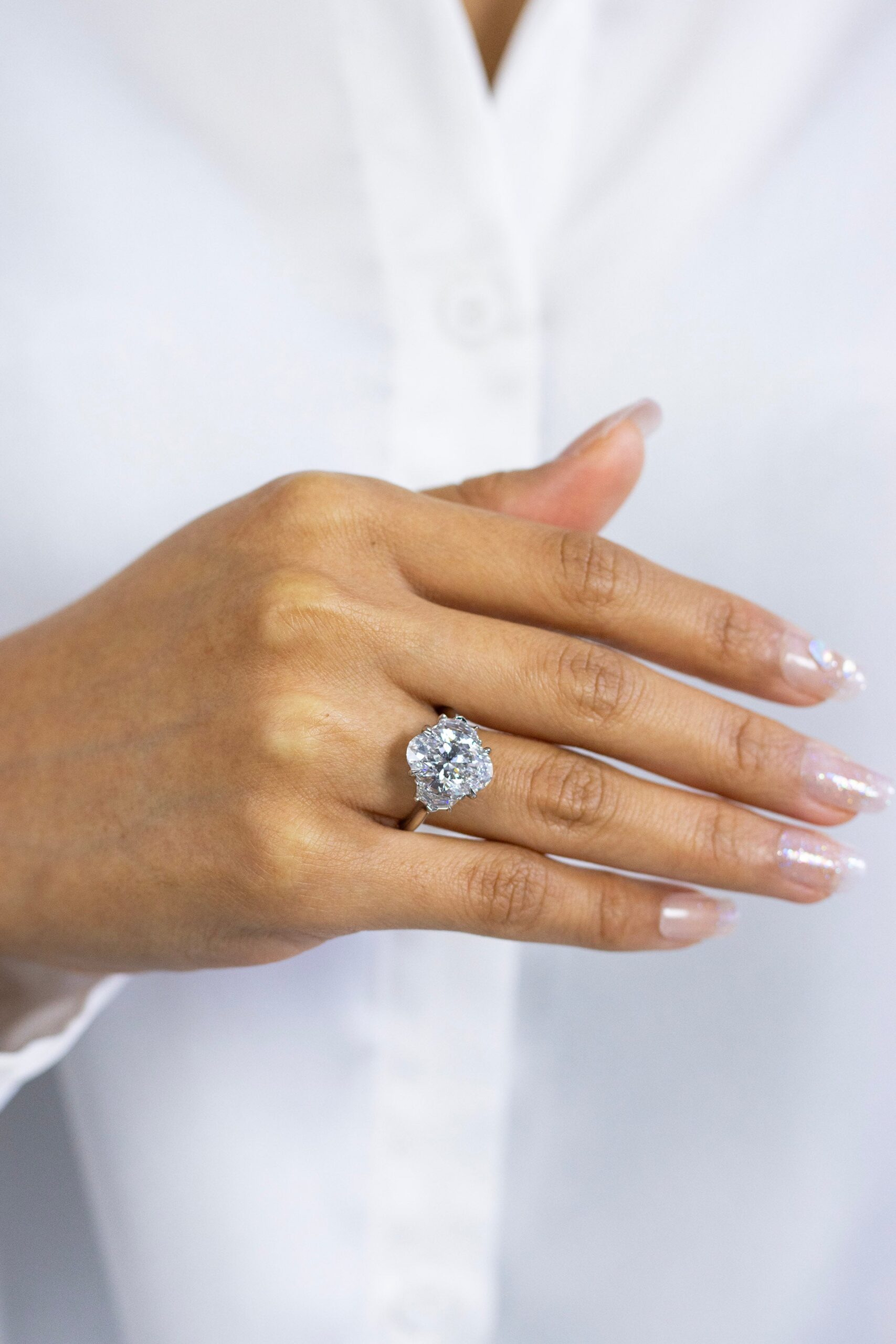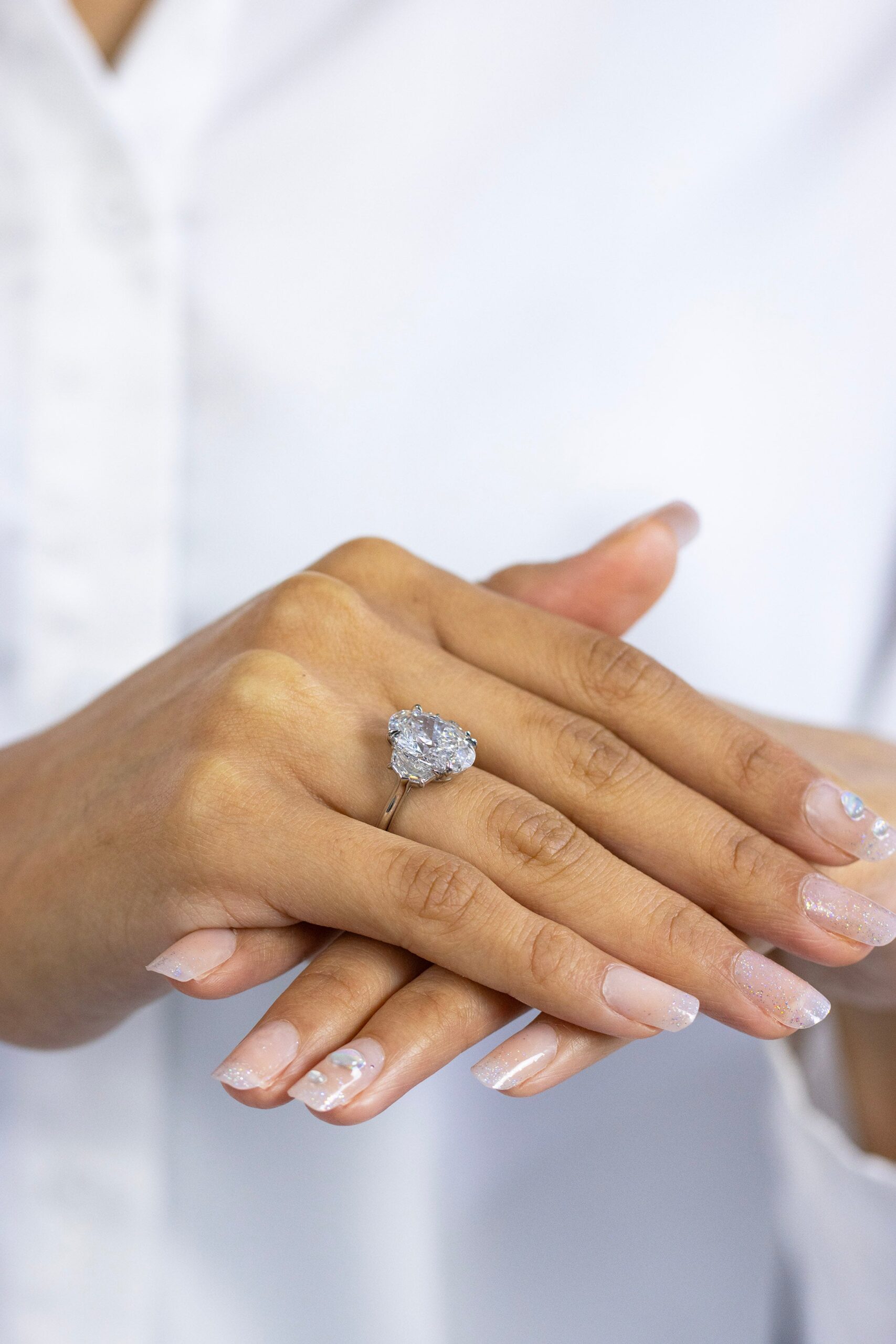 GIA Certified 5.11 Carats Oval Cut Diamond Three-Stone Engagement Ring in Platinum