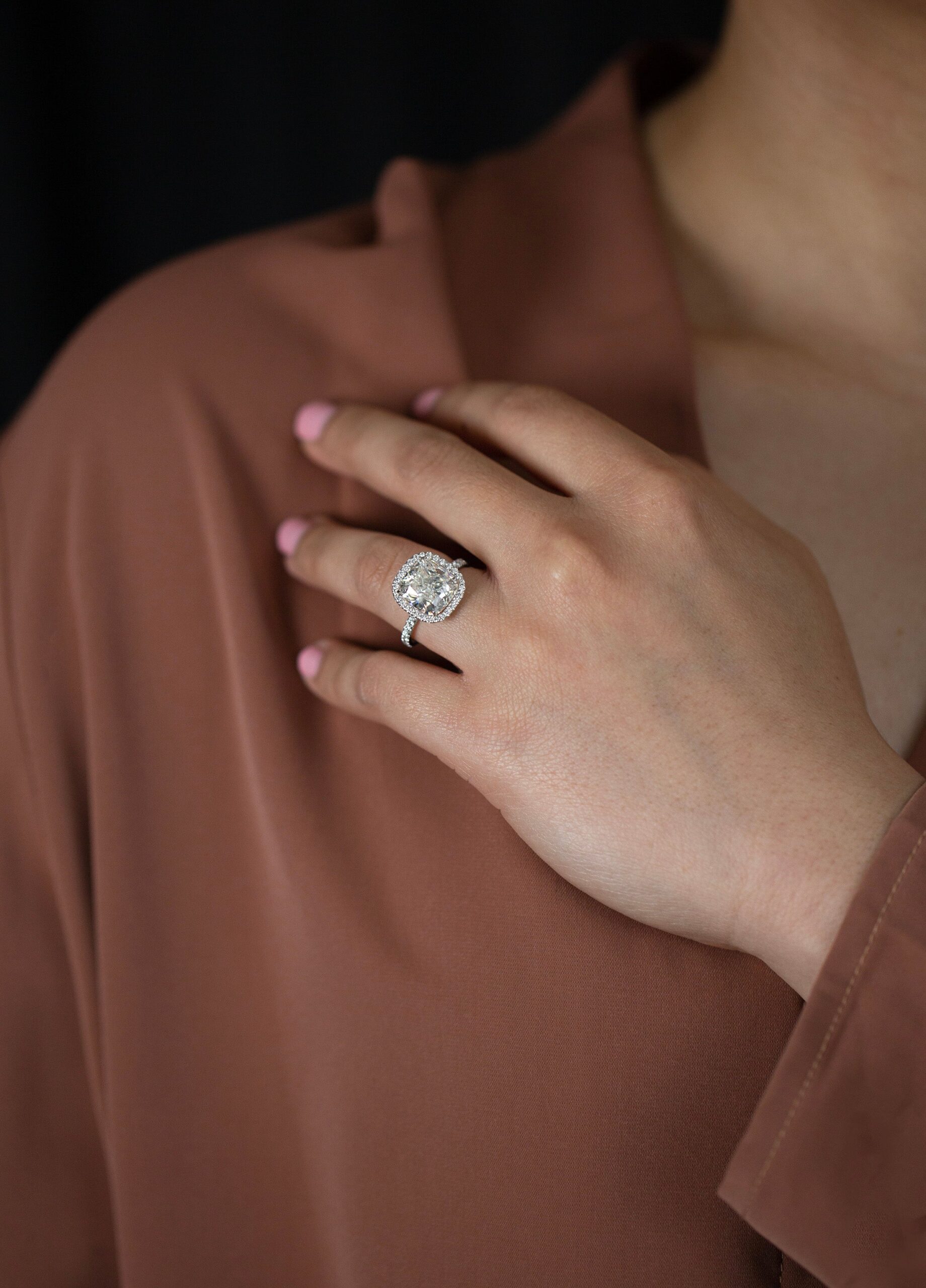 GIA Certified 5.19 Carats Cushion Cut Diamond Halo Engagement Ring in Platinum