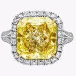 GIA Certified 5.32 Carats Radiant Cut Yellow Diamond Halo Engagement Ring in Yellow & White Gold