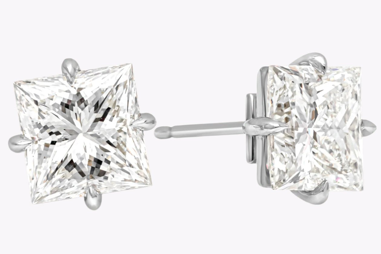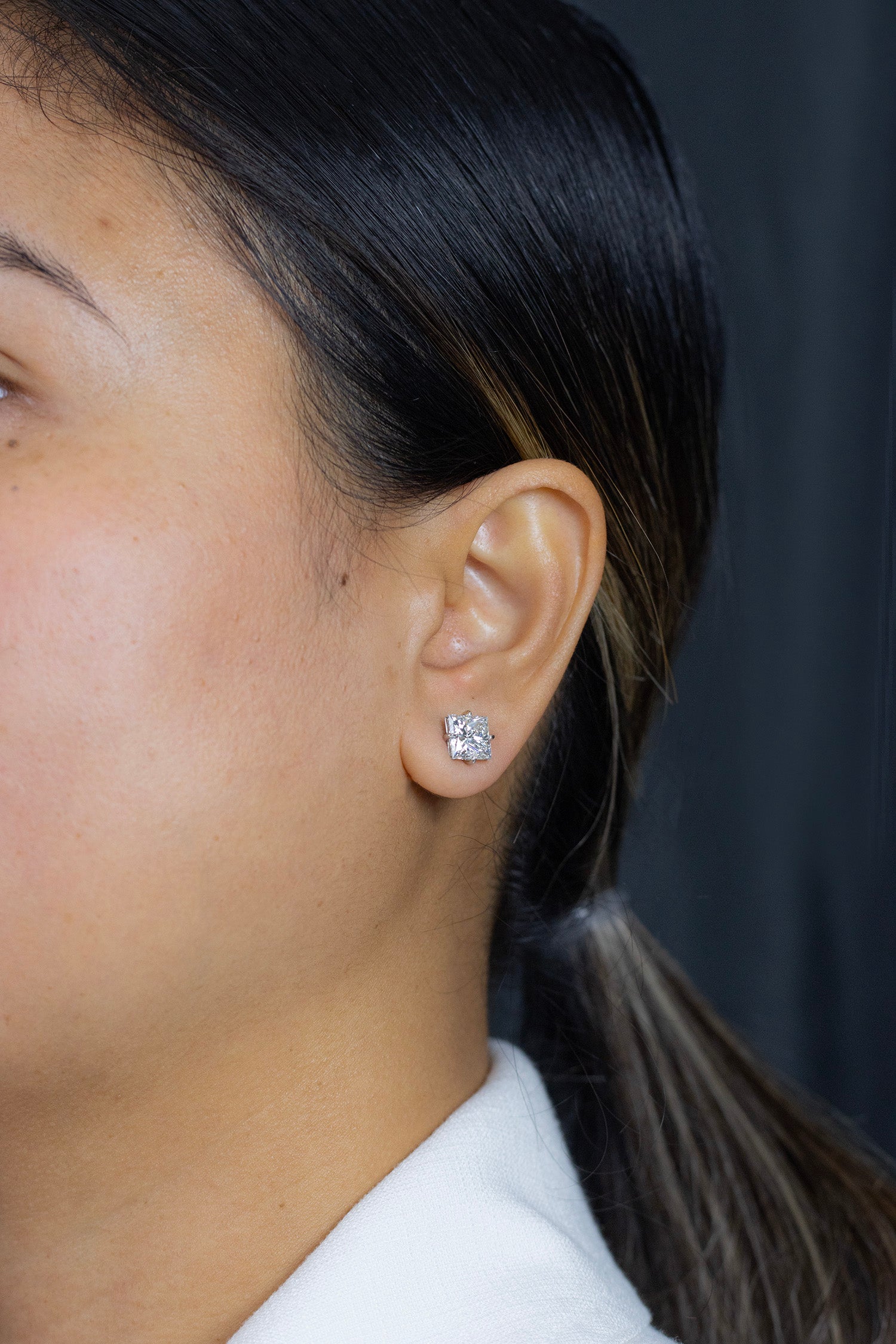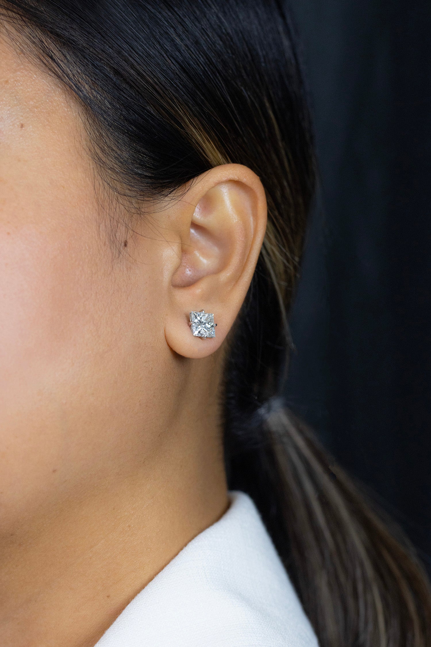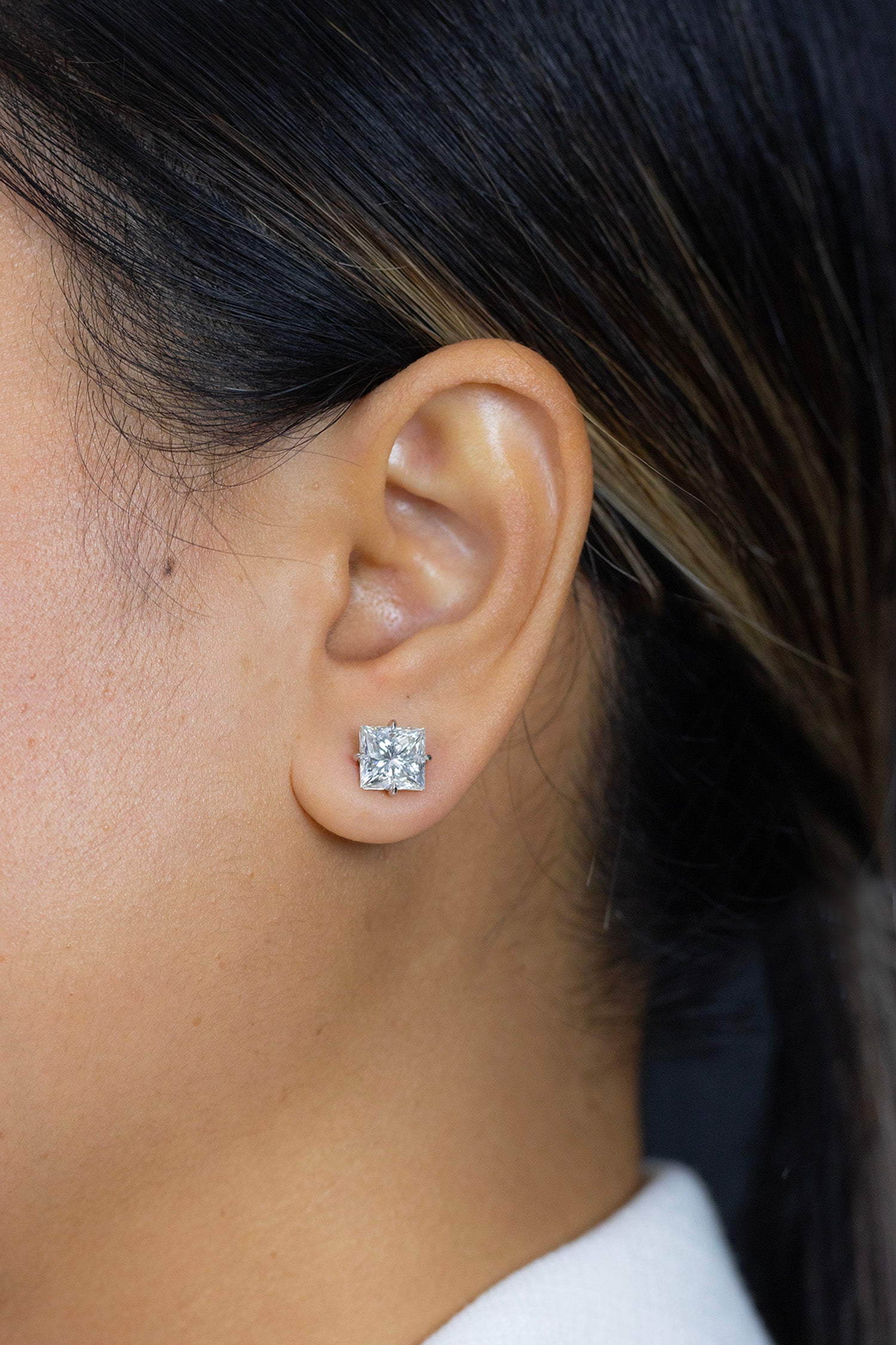 GIA Certified 6.07 Carats Total Princess Brilliant Cut Diamond Stud Earrings in Platinum