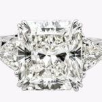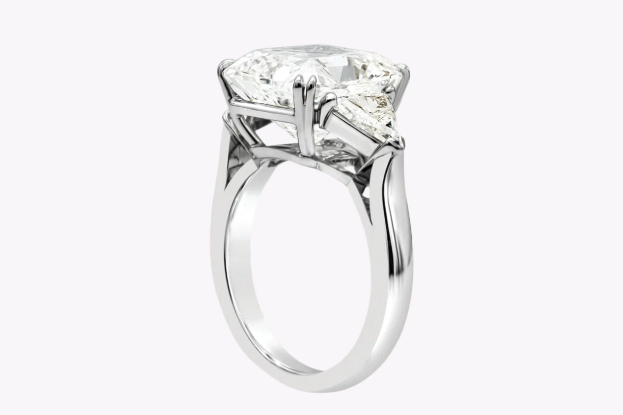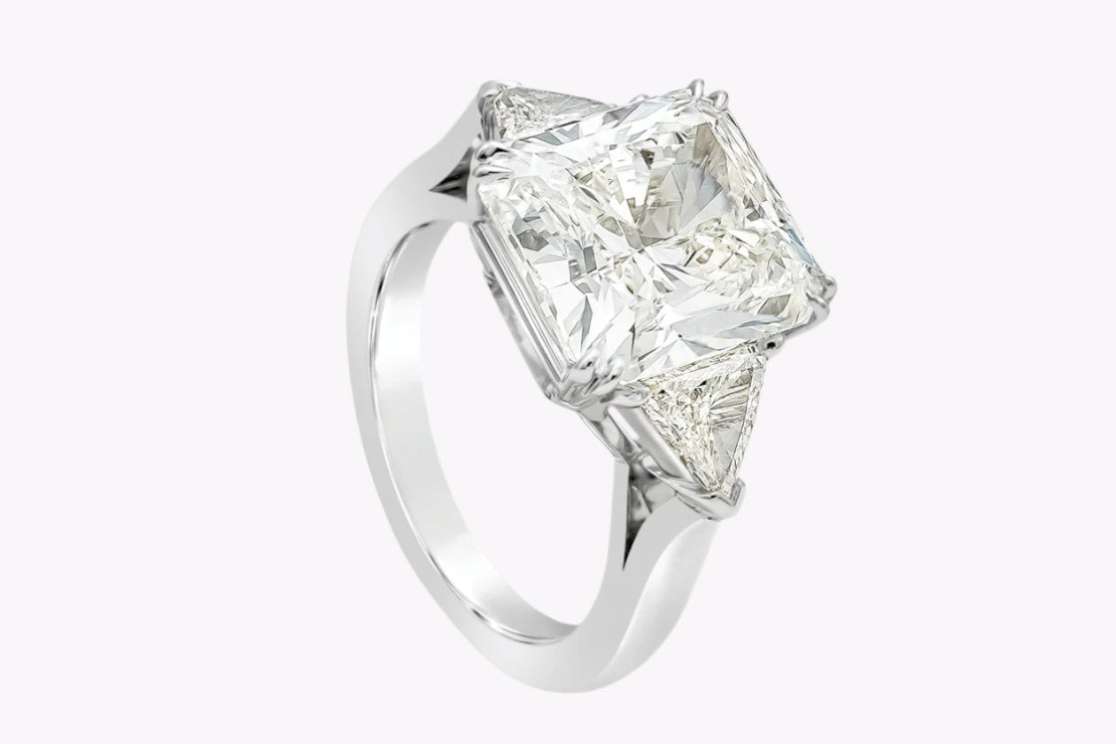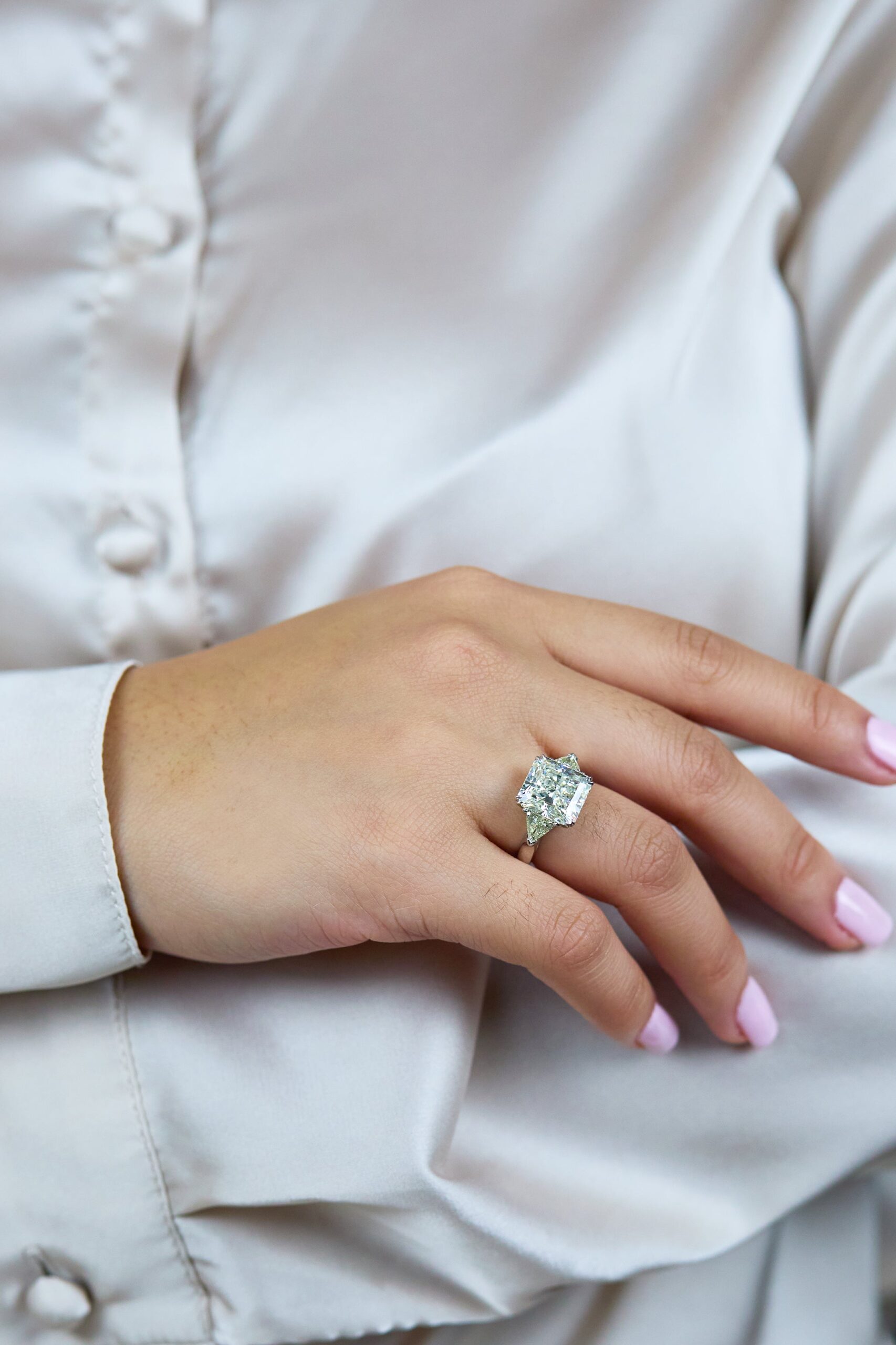 GIA Certified 7.41 Carats Radiant Cut Diamond Three-Stone Engagement Ring in Platinum