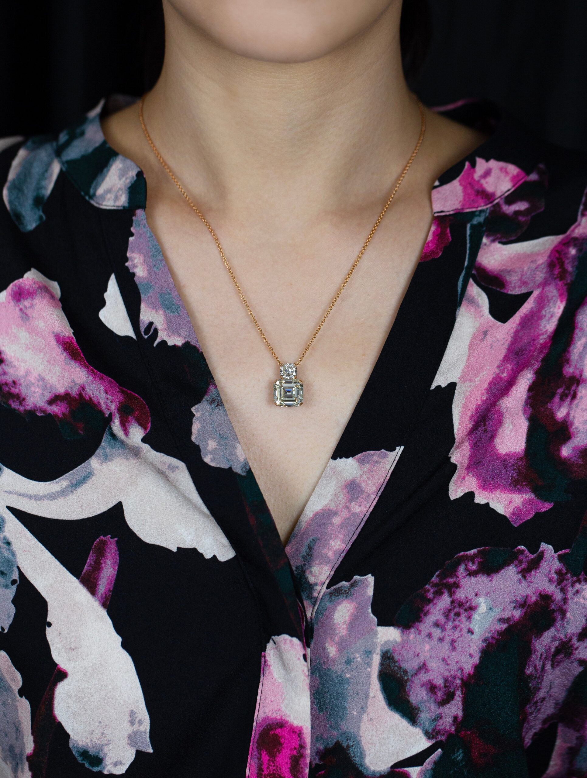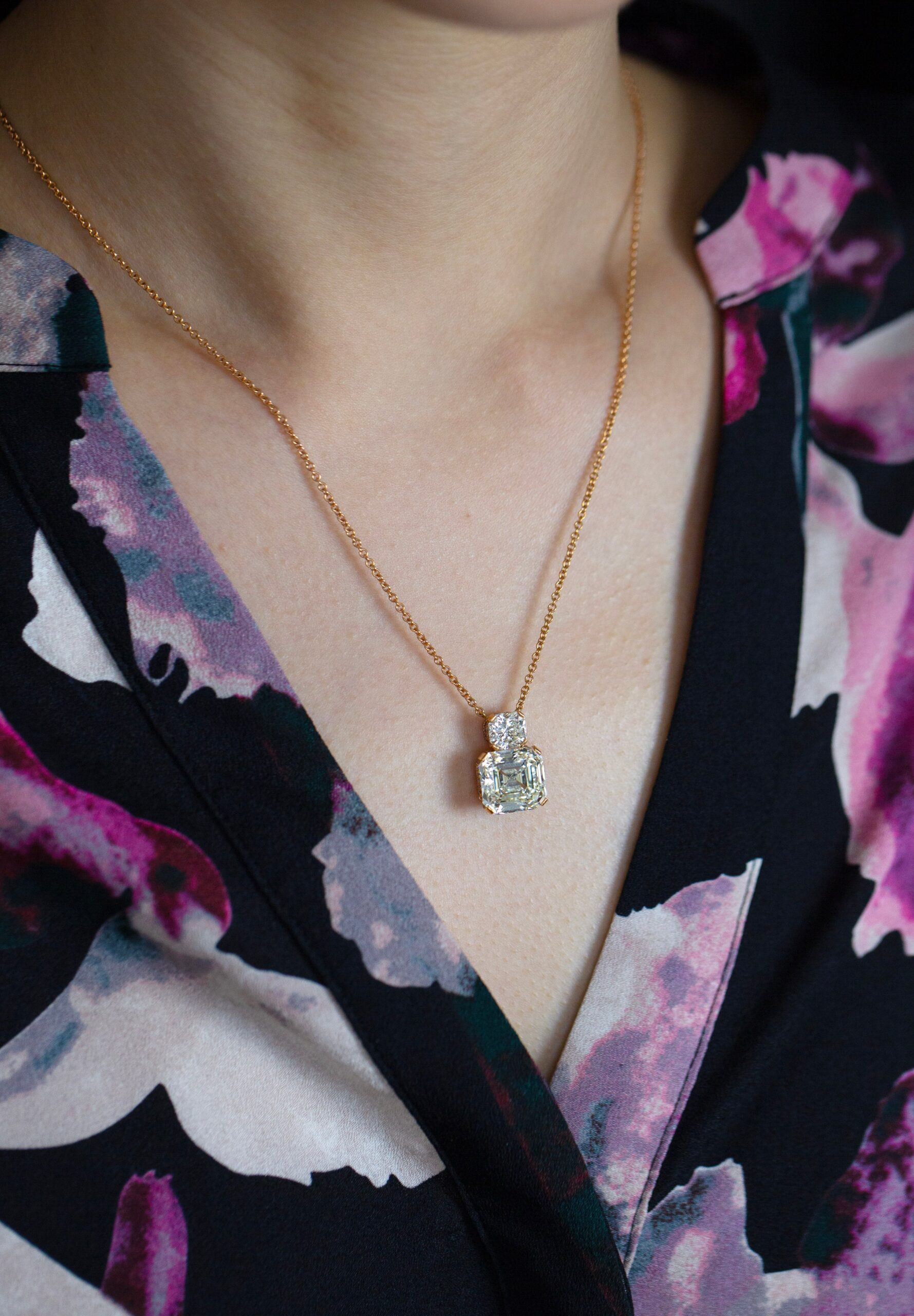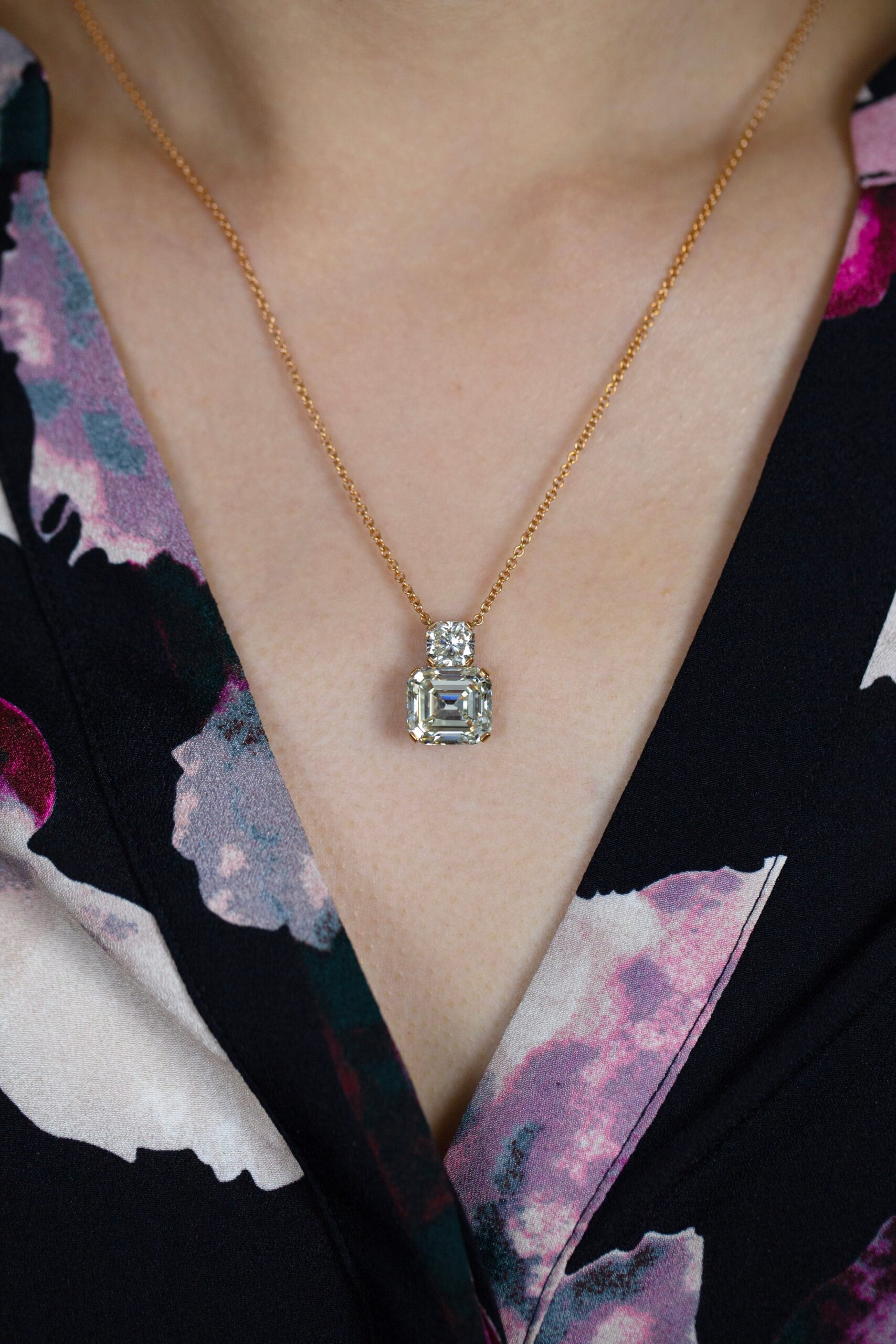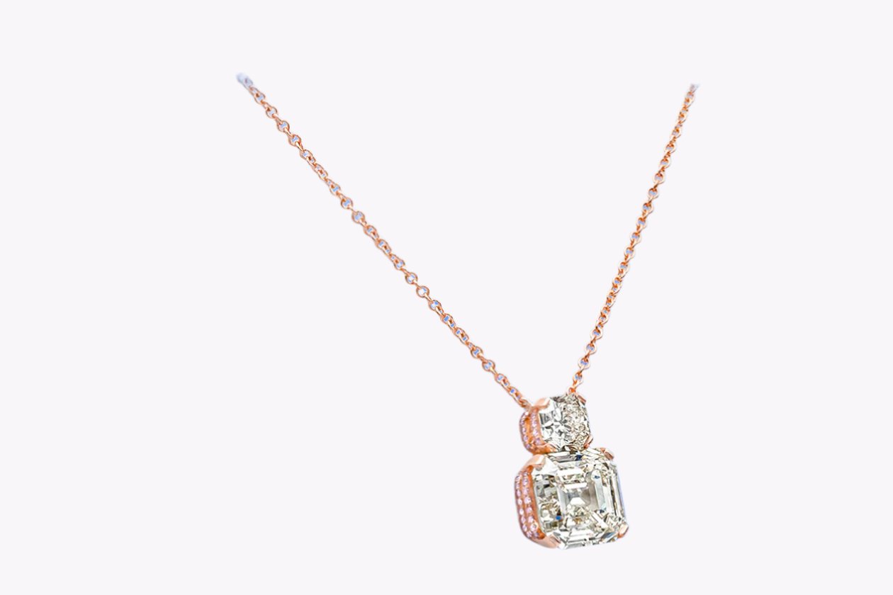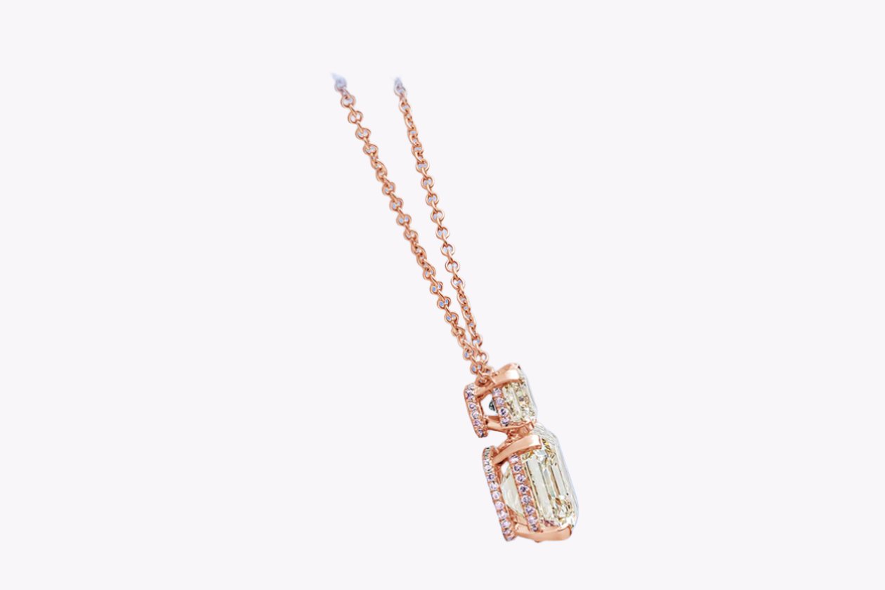 GIA Certified 7.81 Carats Emerald Cut Diamond Pendant Necklace in Rose Gold