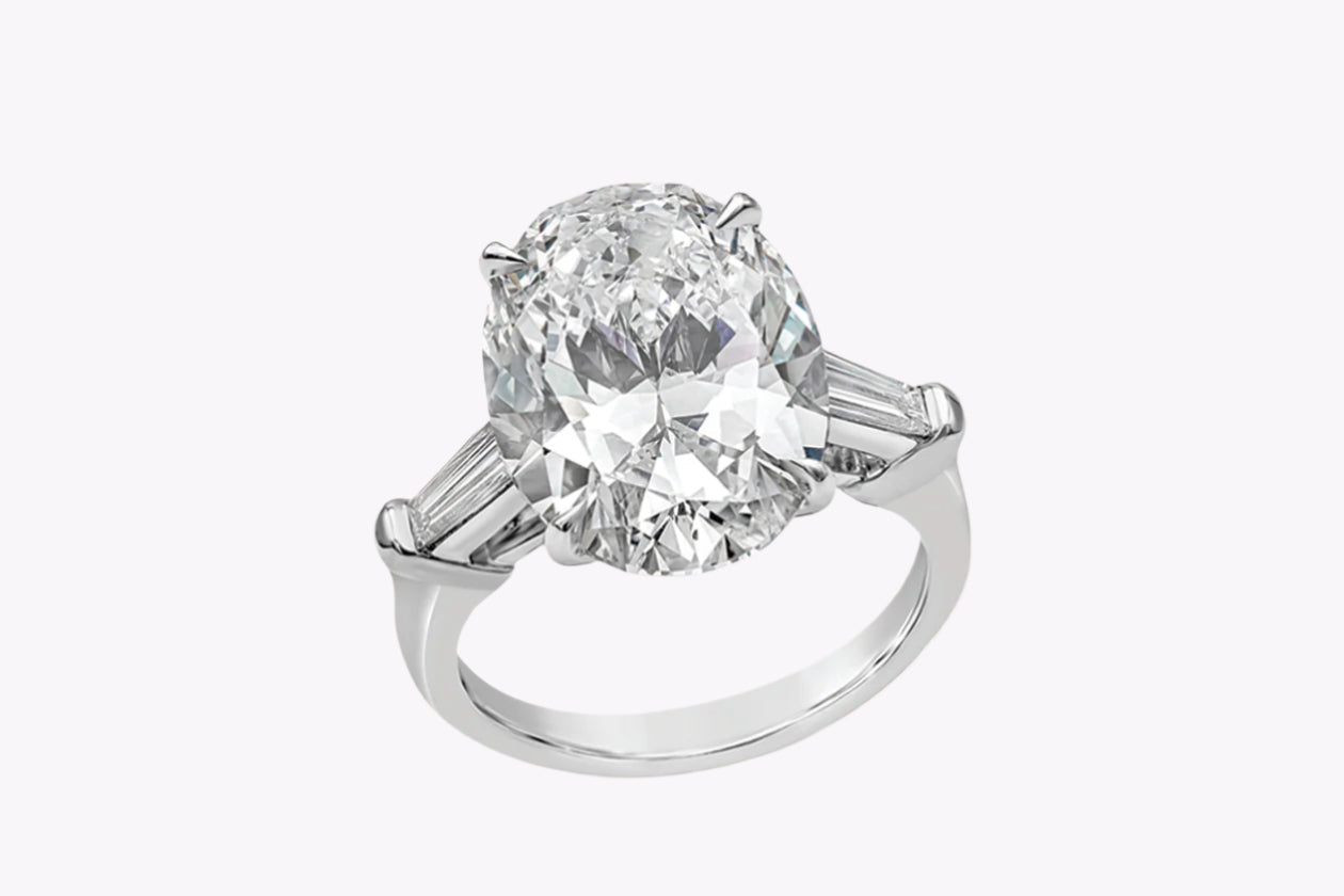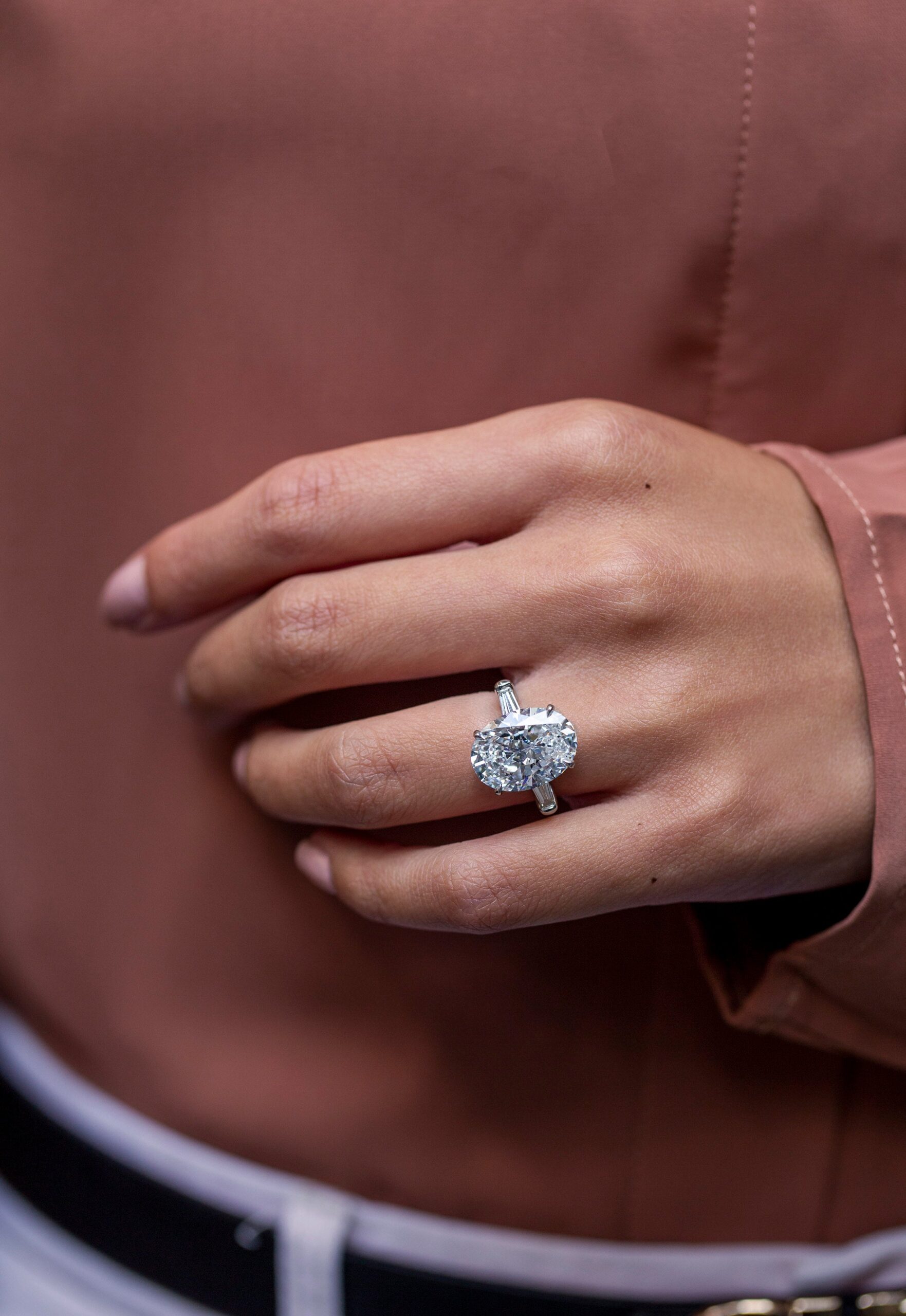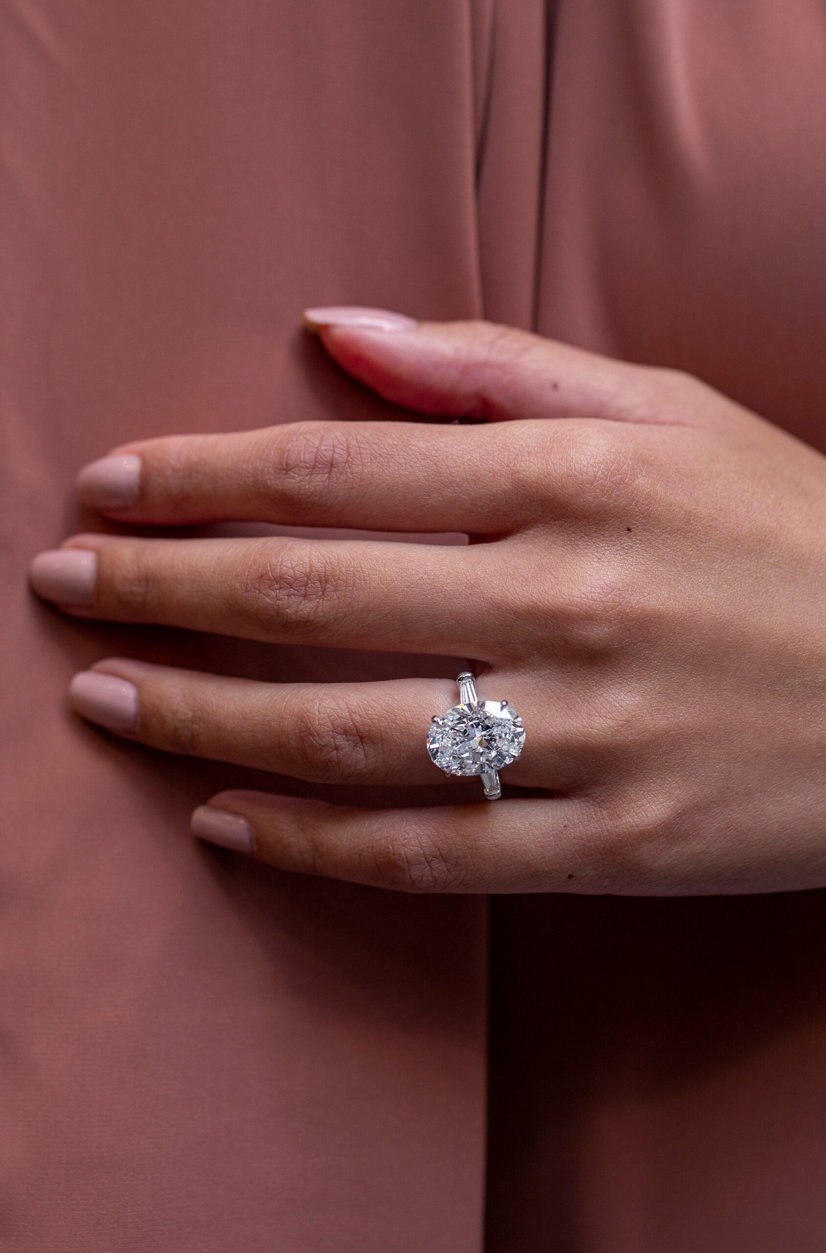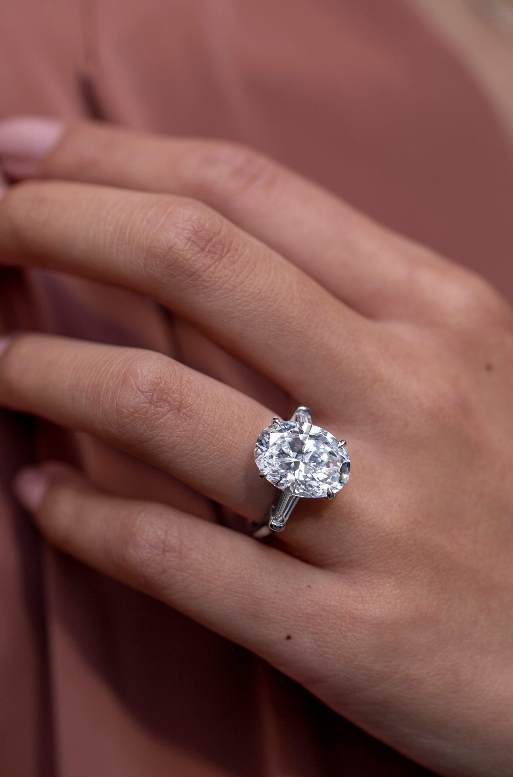 GIA Certified 8.05 Carats Oval Cut Diamond Three-Stone Engagement Ring in Platinum
