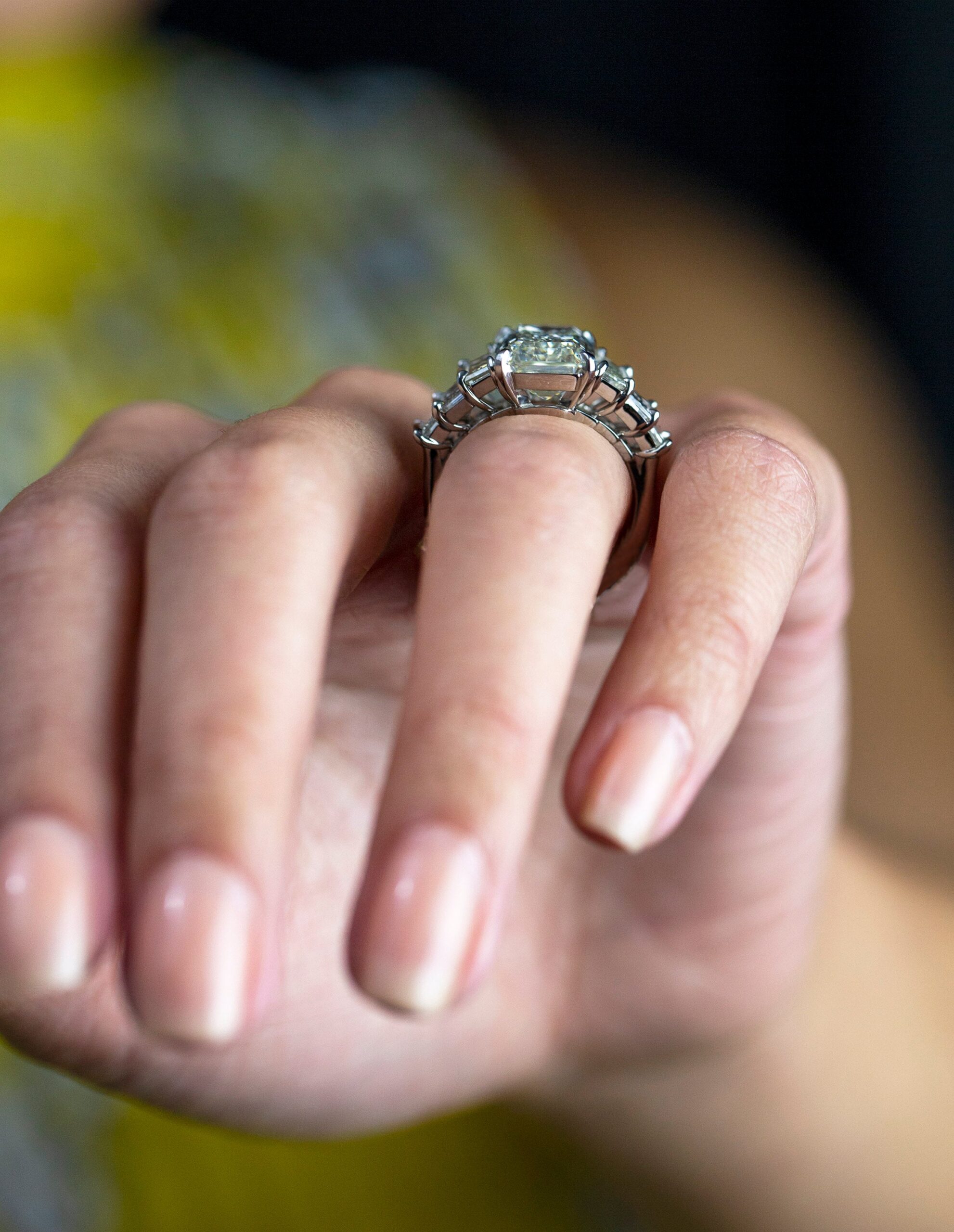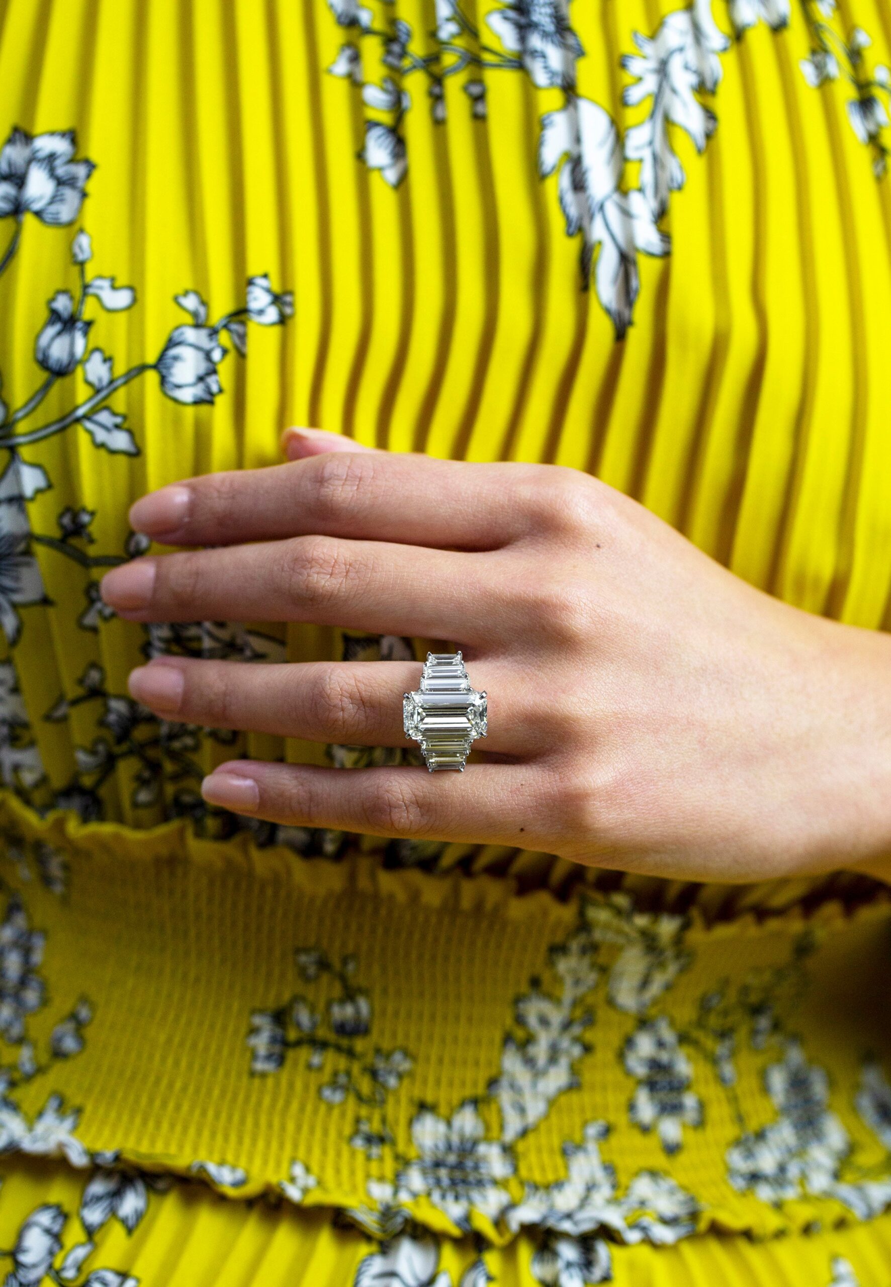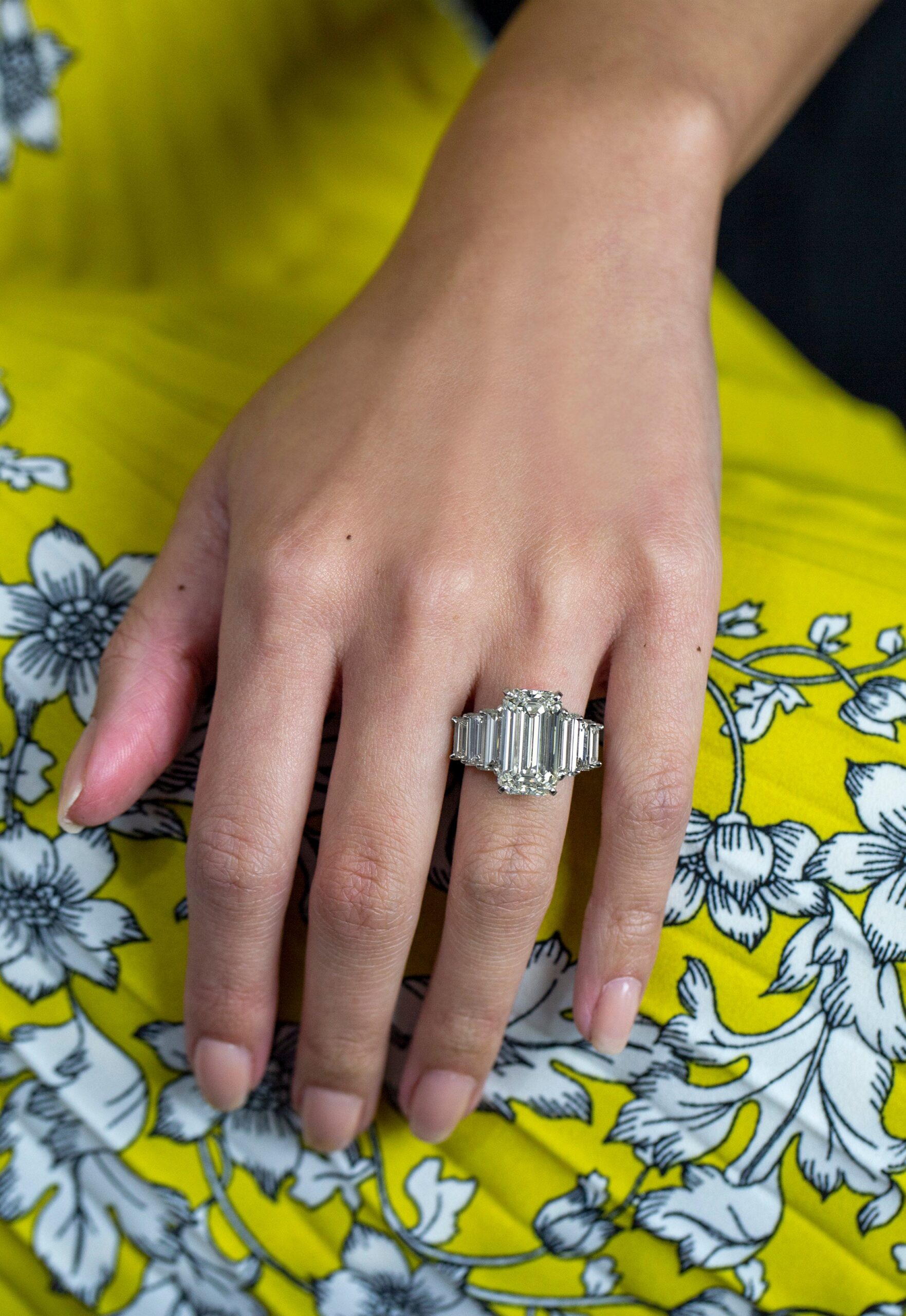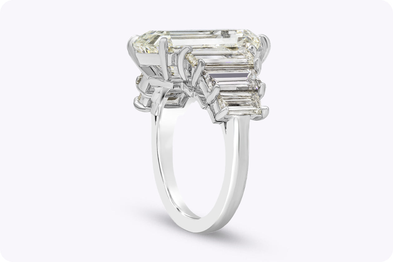 GIA Certified 8.09 Carats Emerald Cut Diamond Seven-Stone Engagement Ring in Platinum