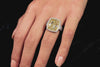 GIA Certified 8.77 Carats Cushion Cut Yellow Diamond Double Halo Engagement Ring in Yellow Gold & Platinum